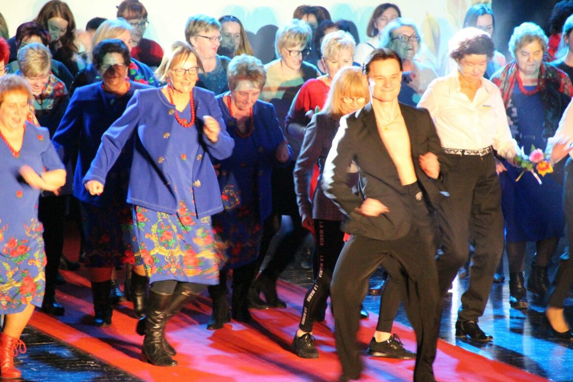 Potem mieliśmy mistrzowski pokaz tańca w wykonaniu pary Magdalena Bandelewicz- Mateusz Wiercioch. Następnie całą serie konkursów w których nagrodzone zostały chyba wszystkie panie obecne na sali widowiskowej. Jeszcze później była lekcja ognistego twista prowadzona przez Mateusza Wierciocha i wzięło w niej udział kilkadziesiąt przedstawicielek płci pięknej. W międzyczasie obejrzeliśmy także pokaz mody a na koniec kapitalny koncert dał Francois – Francuz który śpiewa polskie piosenki po francusku a francuskie po polsku. Całość poprowadził Andrzej Starowicz i uczynił to jak zwykle z humorem i niezwykłą werwą. Nie zapomnieliśmy oczywiście o Ukrainie. Kupując torbę ze specjalnej ukraińskiej serii wspomagaliśmy uchodźców zza naszej wschodniej granicy.