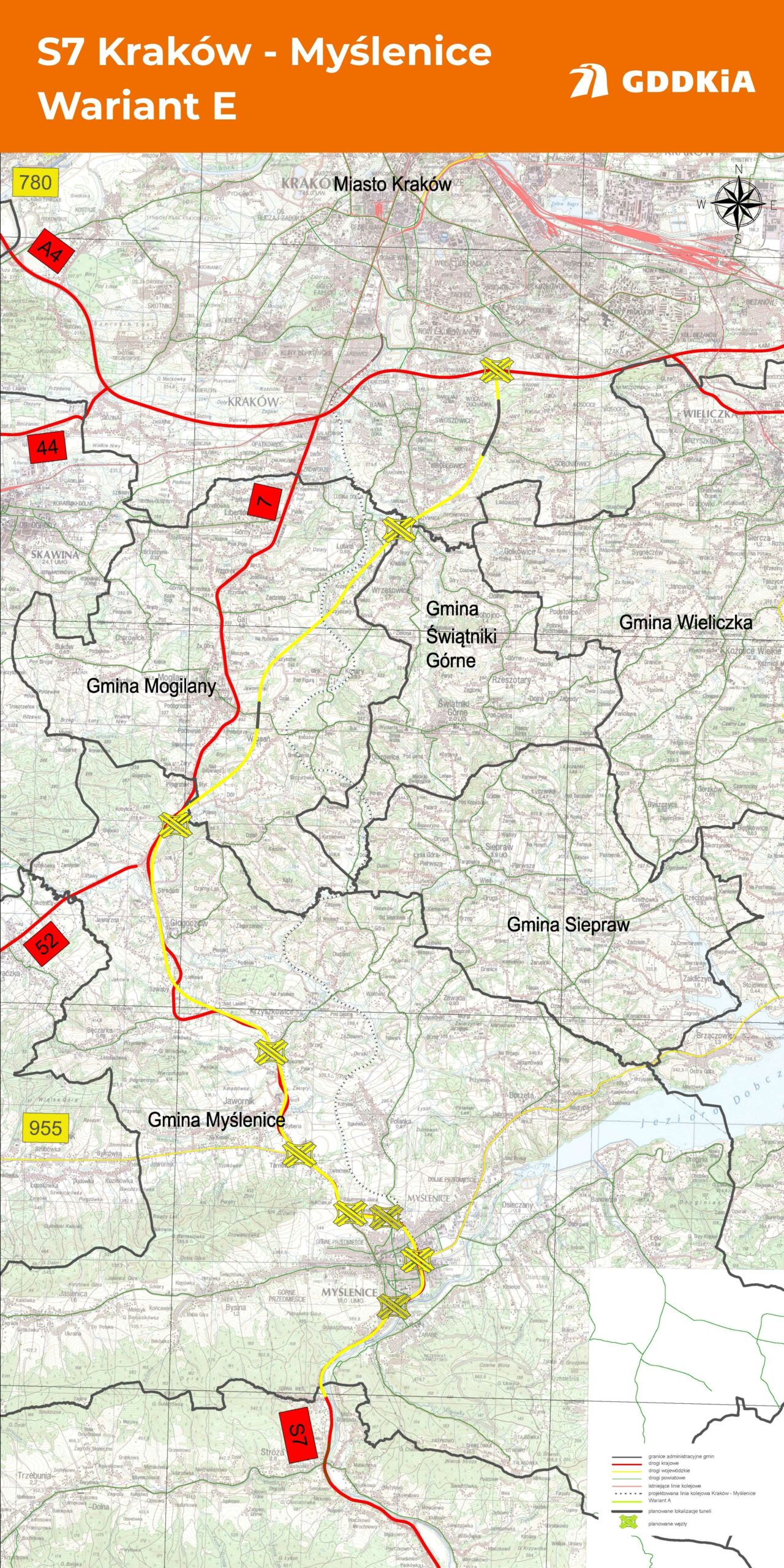 ➡ Wariant E – z Tuchowskiej do Głogoczowa, a dalej śladem obecnej DK7 przez Myślenice.