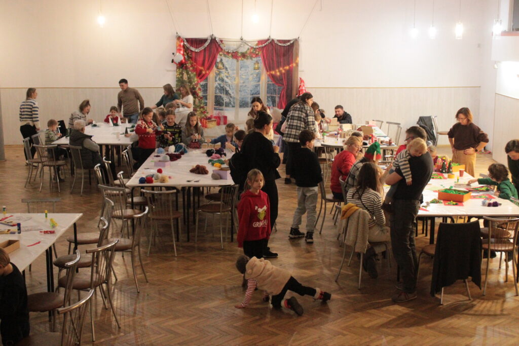 Światełka na choince rozbłysły chwilę po godz. 17 po głośnym odliczeniu przez wszystkich od 10 do 1, ale już dwie godziny wcześniej w strażnicy rozpoczęły się warsztaty kreatywne, do udziału w których druhowie i druhny zaprosiły najmłodszych mieszkańców i razem z nimi tworzyli świąteczne dekoracje na choinkę i nie tylko.