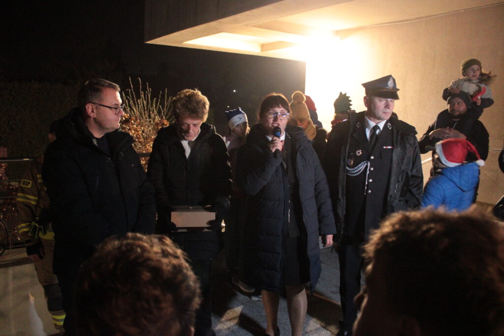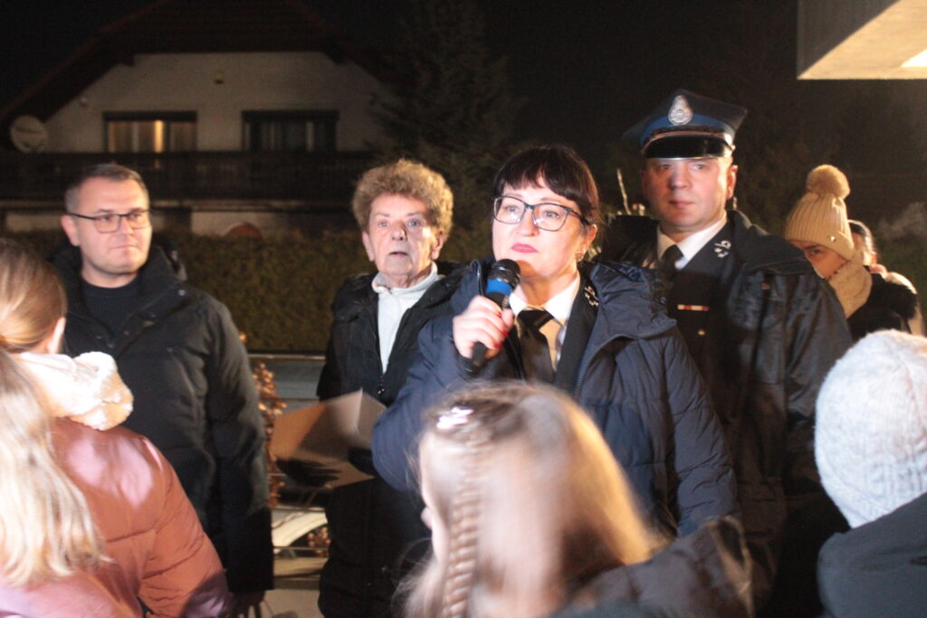 Był też Święty Mikołaj, kolędy, które zaśpiewała dla wszystkich druhna Natalia Szymska, gorący poczęstunek oraz życzenia. Te ostatnie złożyli mieszkańcom: burmistrz Jarosław Szlachetka, który zrobił to w imieniu swoim i radnej Haliny Dyląg, która też była obecna na rozświetleniu, oraz druhna Edyta Mazur, prezes OSP Myślenice Dolne Przedmieście.