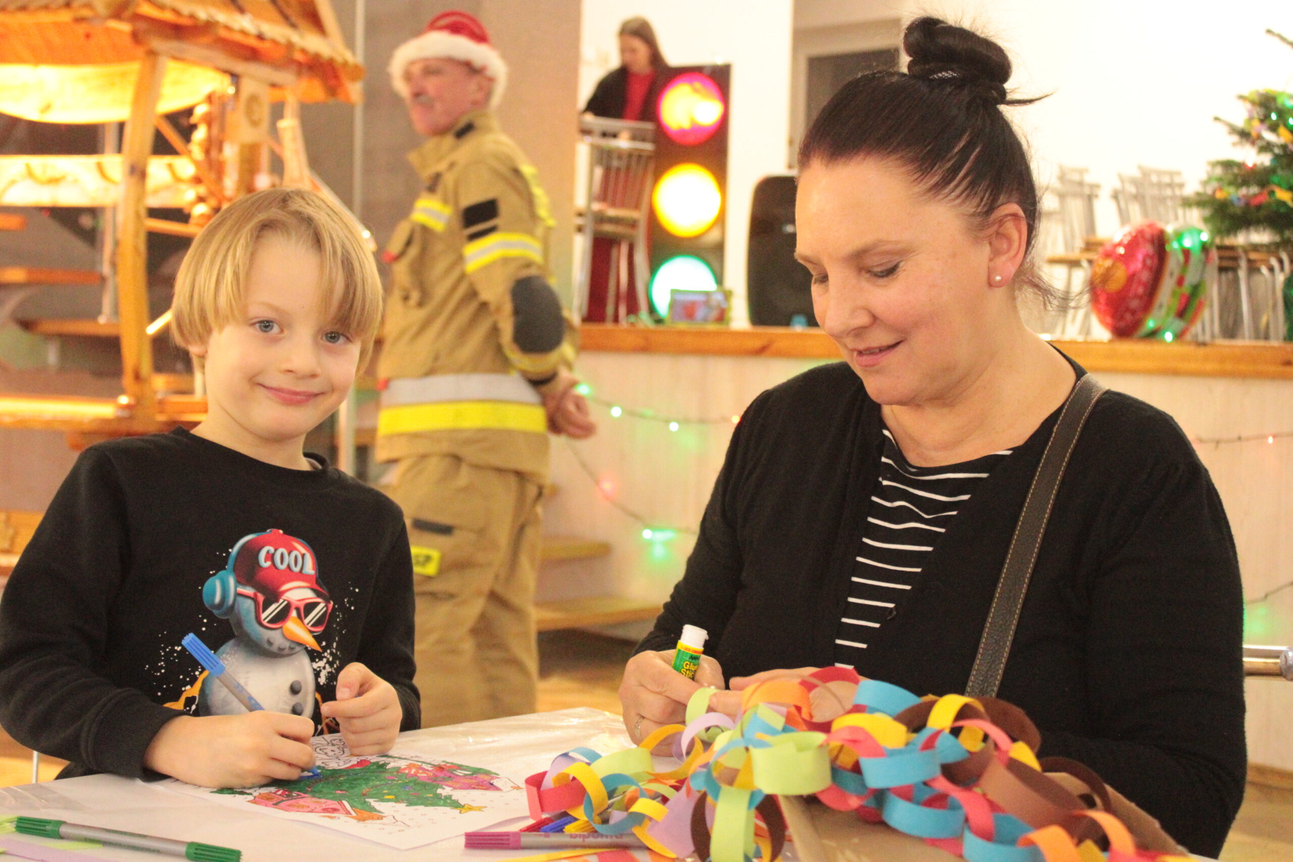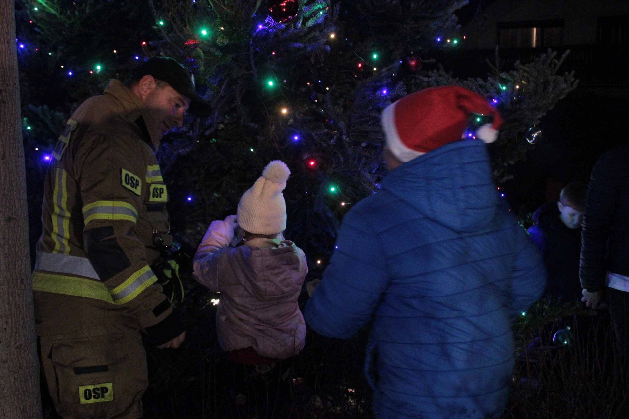 Światełka na choince rozbłysły chwilę po godz. 17 po głośnym odliczeniu przez wszystkich od 10 do 1, ale już dwie godziny wcześniej w strażnicy rozpoczęły się warsztaty kreatywne, do udziału w których druhowie i druhny zaprosiły najmłodszych mieszkańców i razem z nimi tworzyli świąteczne dekoracje na choinkę i nie tylko.