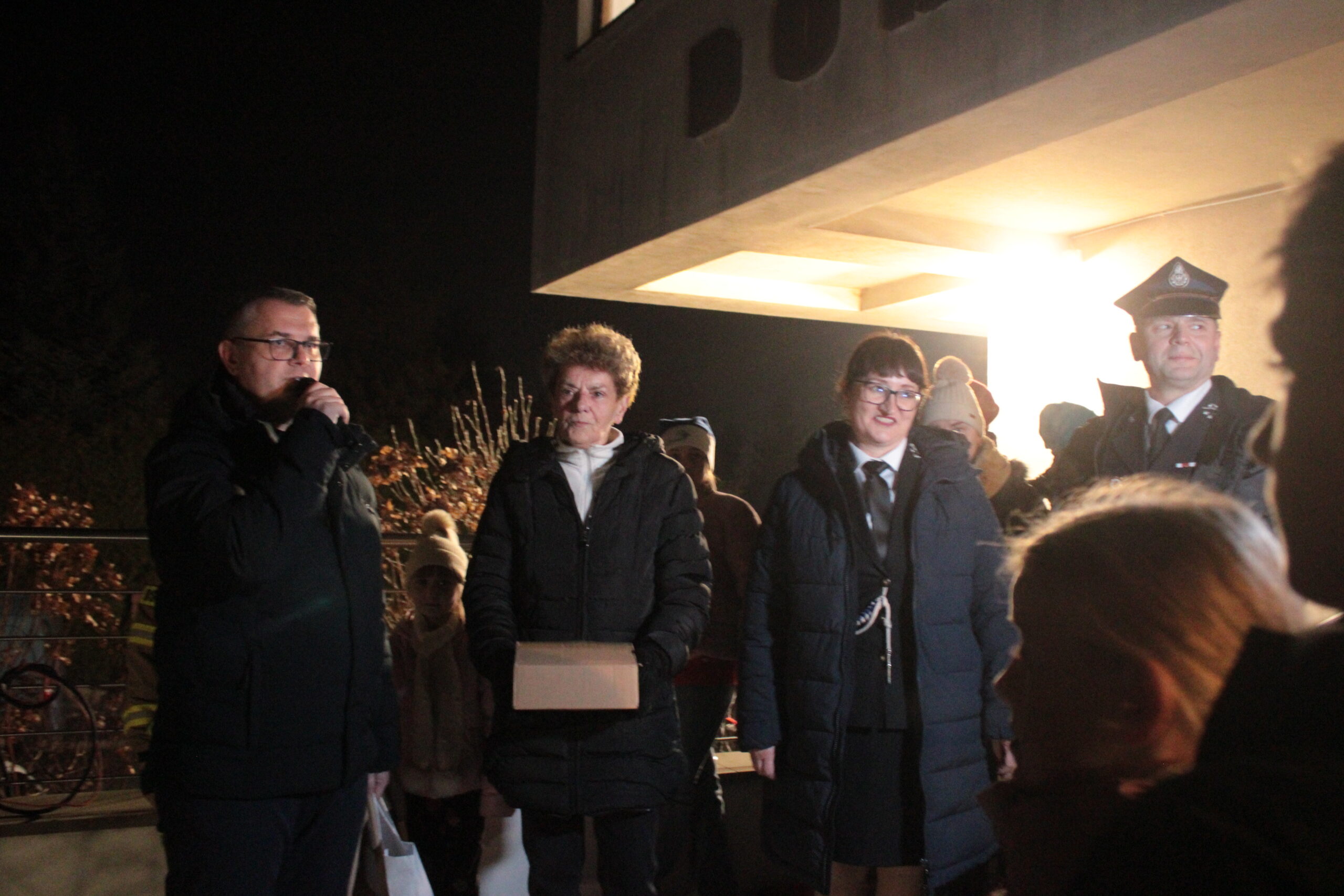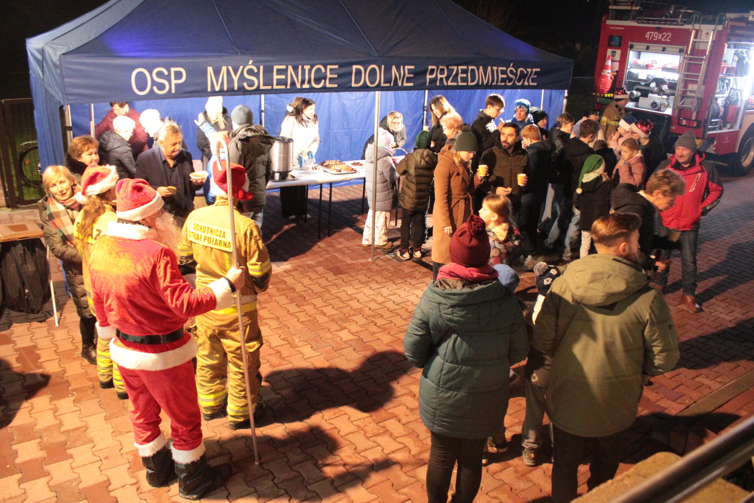 Był też Święty Mikołaj, kolędy, które zaśpiewała dla wszystkich druhna Natalia Szymska, gorący poczęstunek oraz życzenia. Te ostatnie złożyli mieszkańcom: burmistrz Jarosław Szlachetka, który zrobił to w imieniu swoim i radnej Haliny Dyląg, która też była obecna na rozświetleniu, oraz druhna Edyta Mazur, prezes OSP Myślenice Dolne Przedmieście.