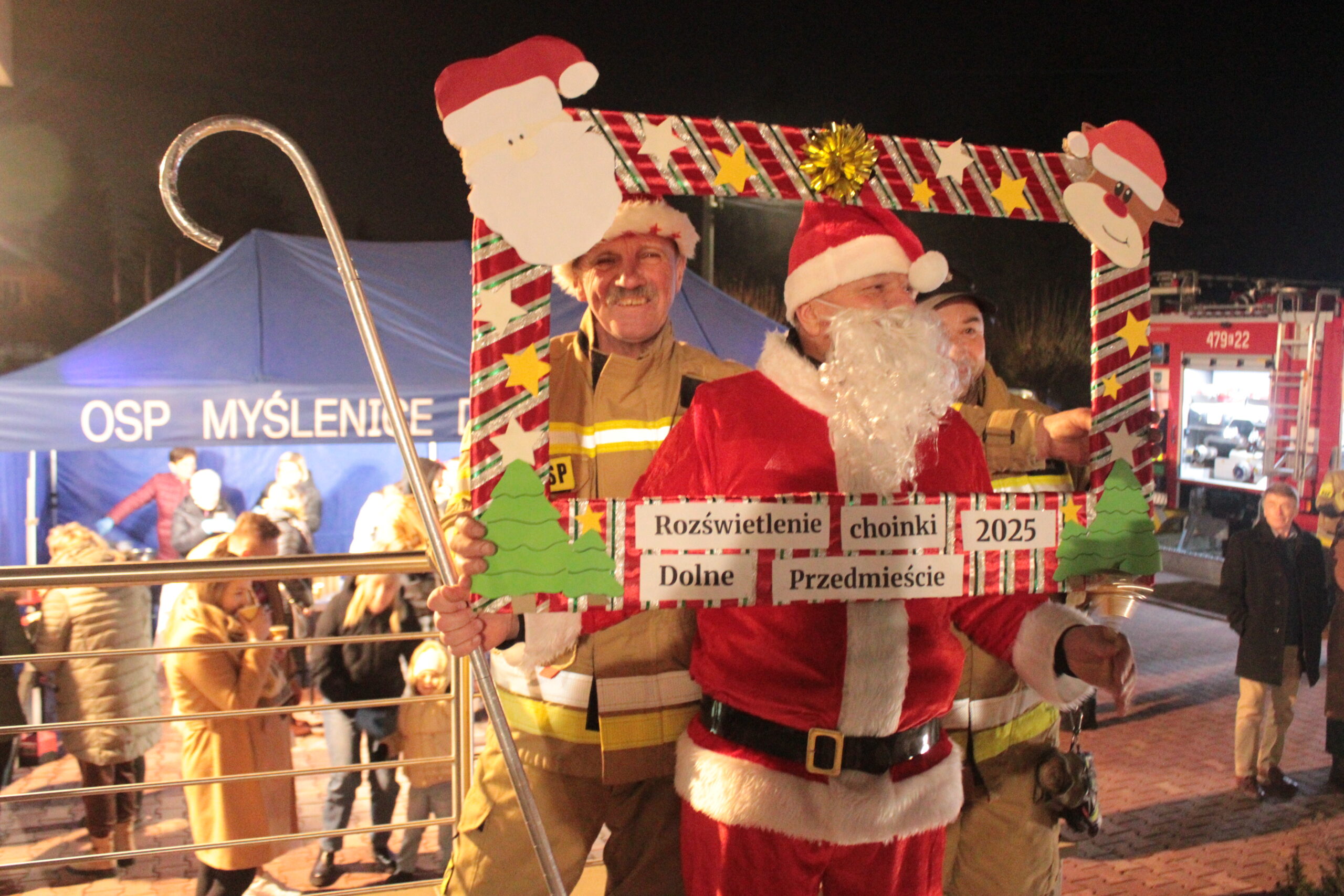 Drugi rok z rzędu na placu przed strażnicą OSP Myślenice Dolne Przedmieście w grudniowy weekend zgromadzili się mieszkańcy, aby uczestniczyć w rozświetleniu świątecznego drzewka. To trzecie w tym miesiącu takie wydarzenie w Myślenicach po rozświetleniu choinek na Rynku i na Zarabiu. Gospodarzami niedzielnego popołudniowego spotkania przy choince na Dolnym Przedmieściu byli strażacy z OSP Myślenice Dolne Przedmieście, a gmina Myślenice wsparła ich w jego organizacji.