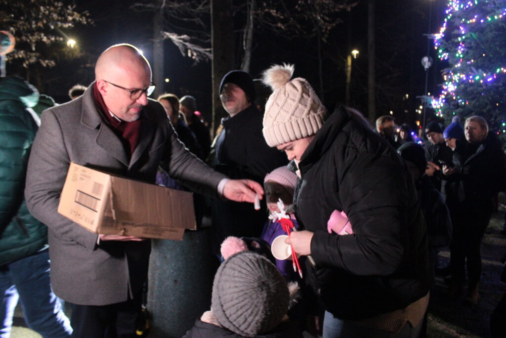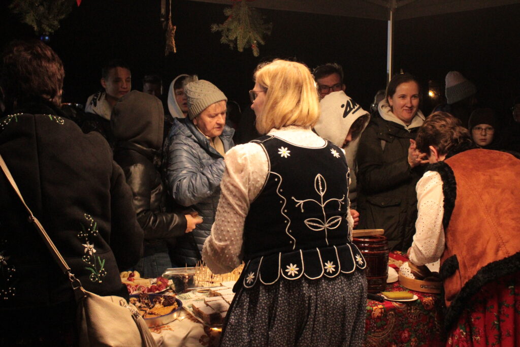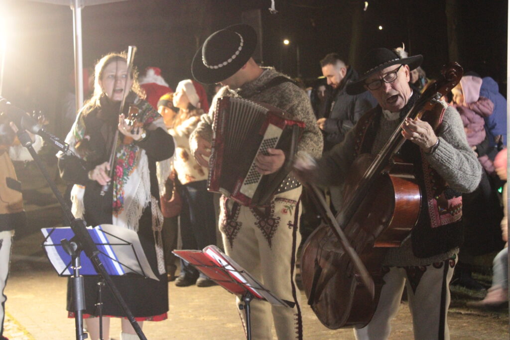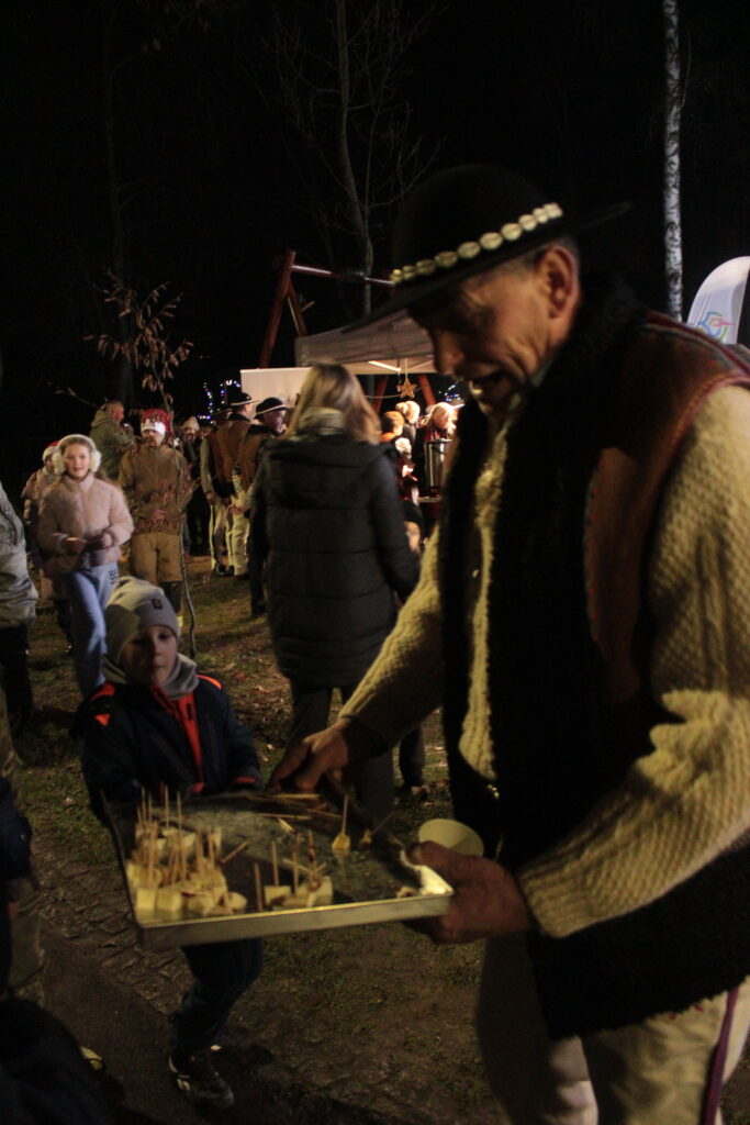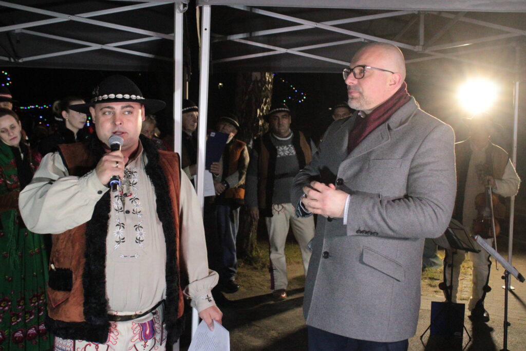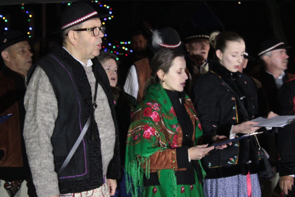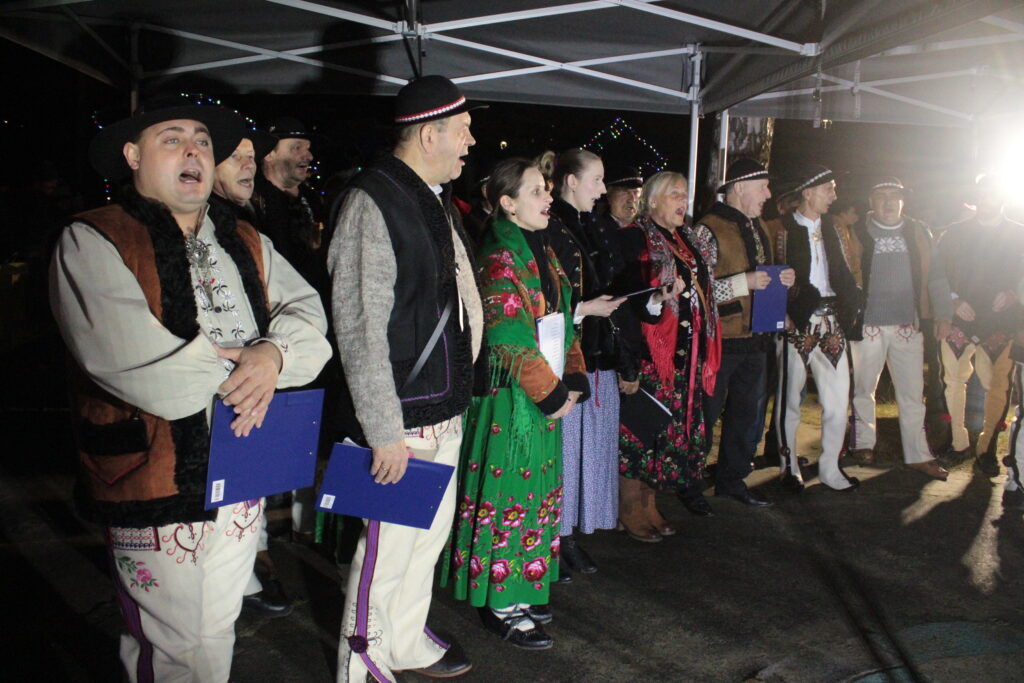 Zgromadzonych przy choince mieszkańców przywitali zastępca burmistrza Myślenic Robert Bylica, ks. Grzegorz Kurzec, proboszcz parafii pw. Św. Franciszka z Asyżu oraz Bartłomiej Czepiel, prezes oddziału Górali Myślenickich. Złożyli świąteczne życzenia, a prezes oddziału Górali, zgodnie z dawnym zwyczajem, posypał zebranych owsem.