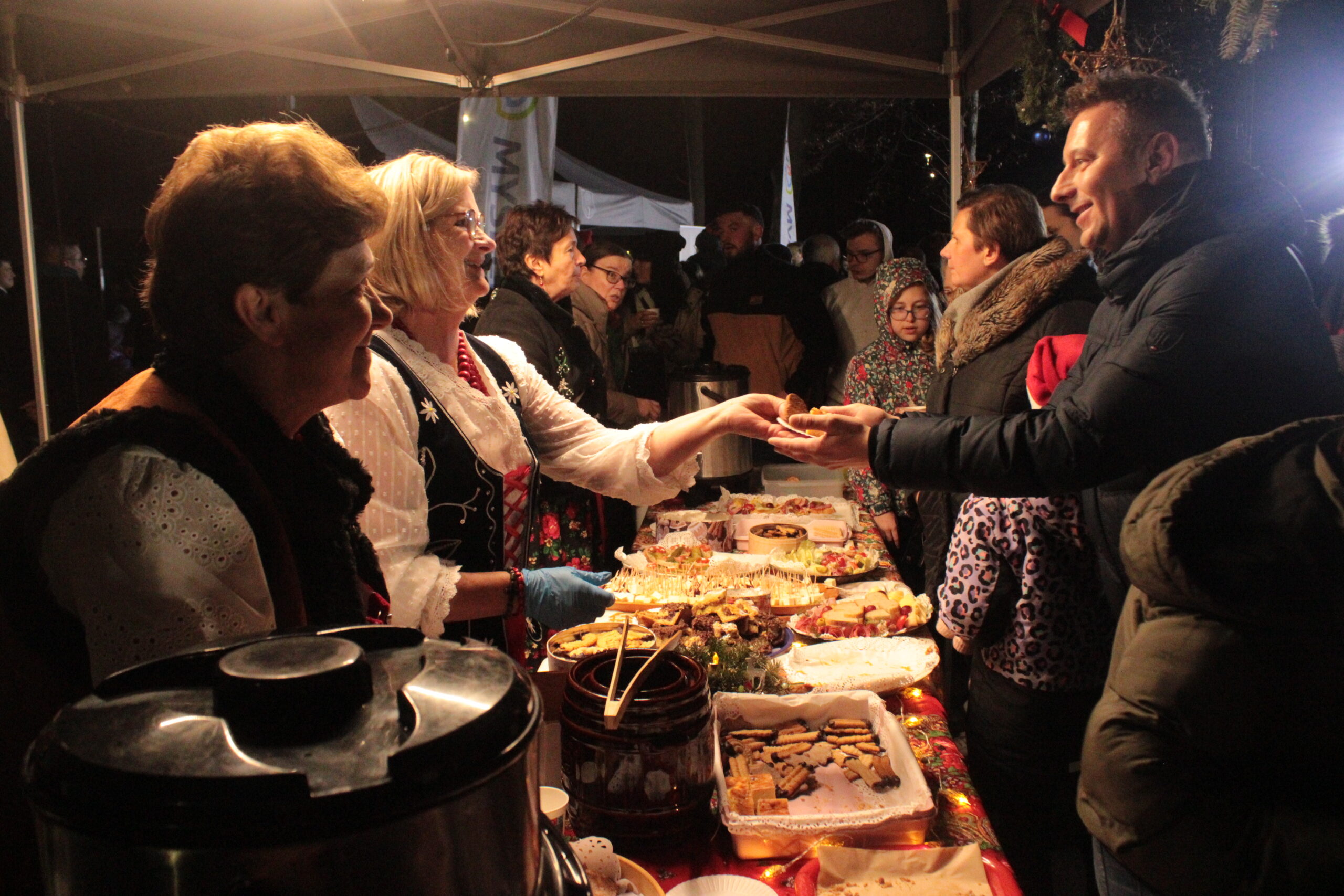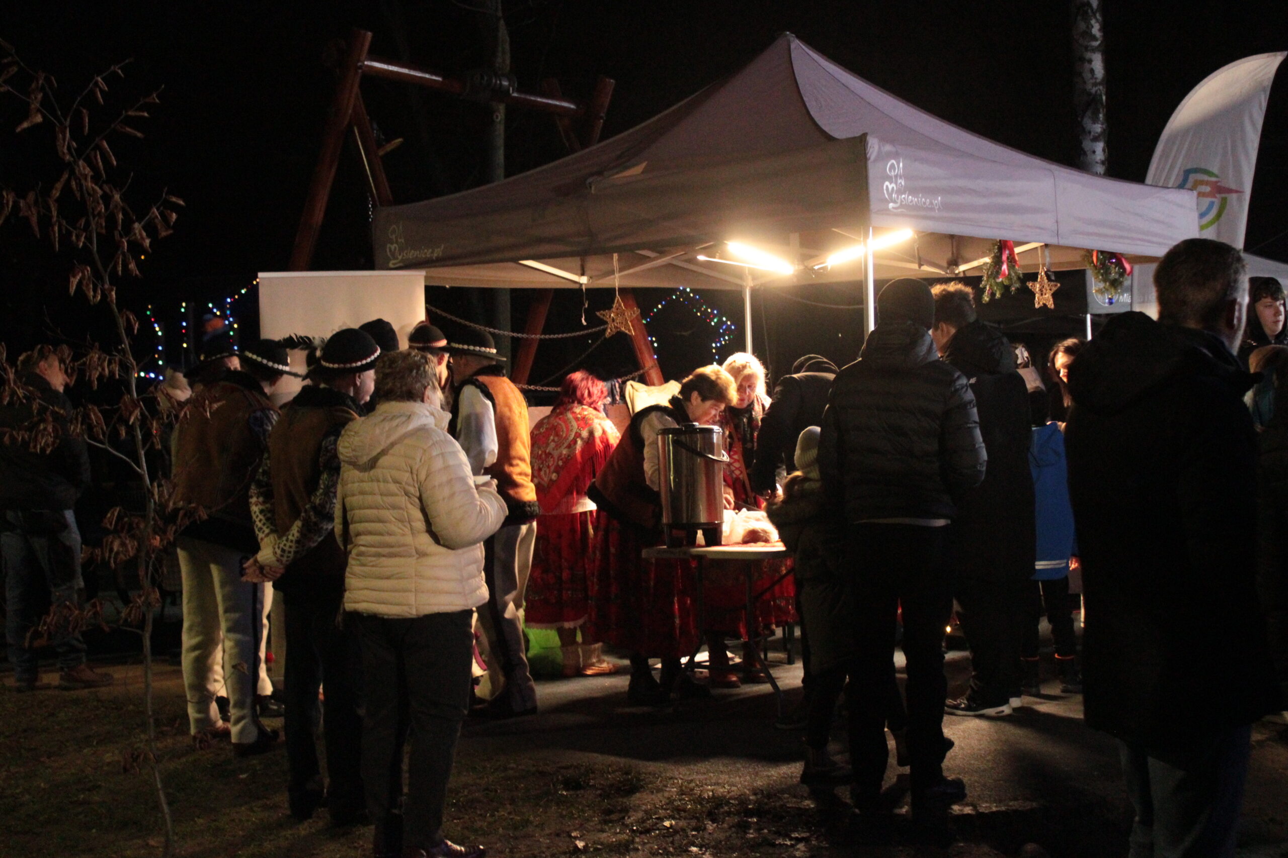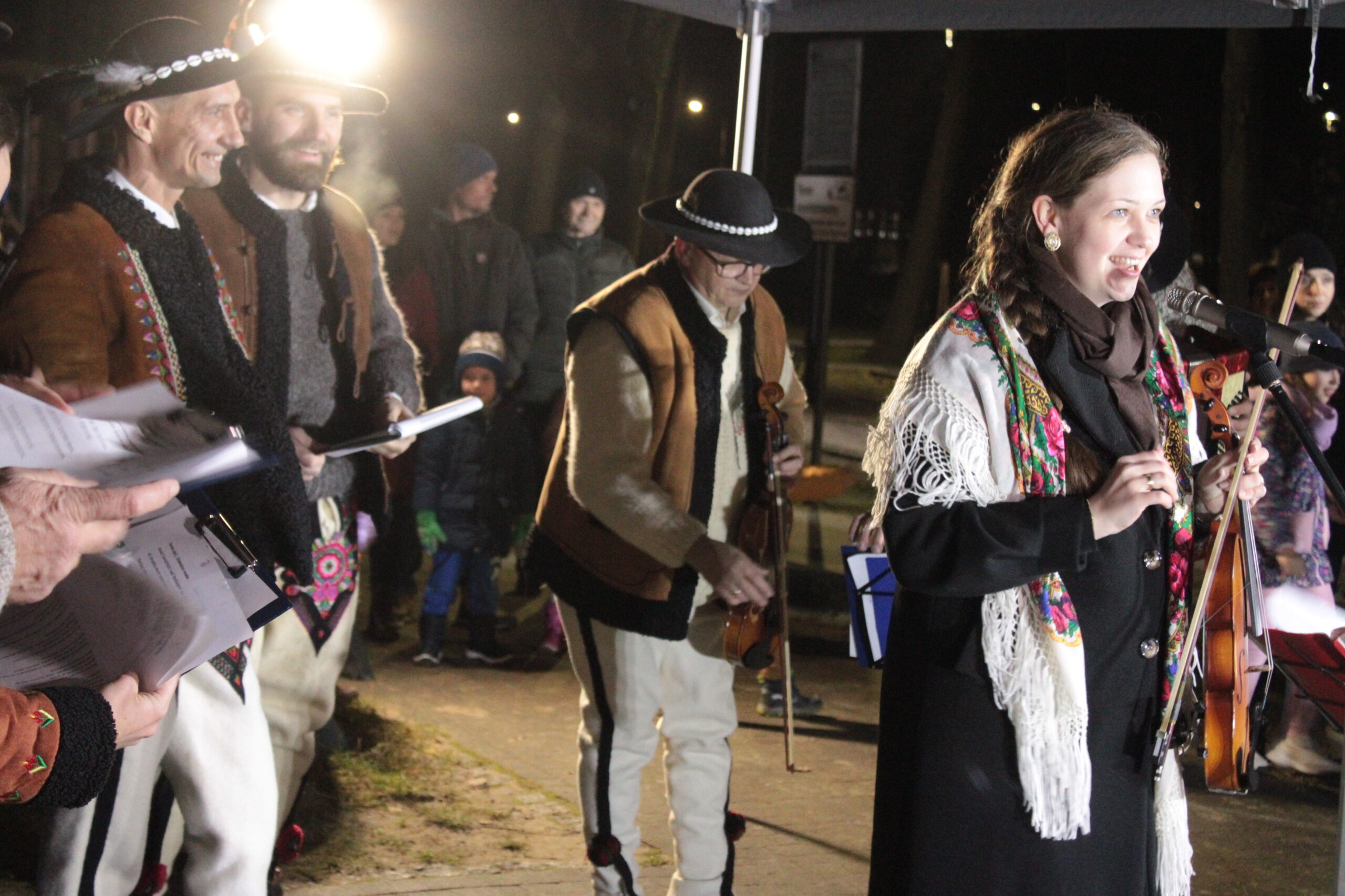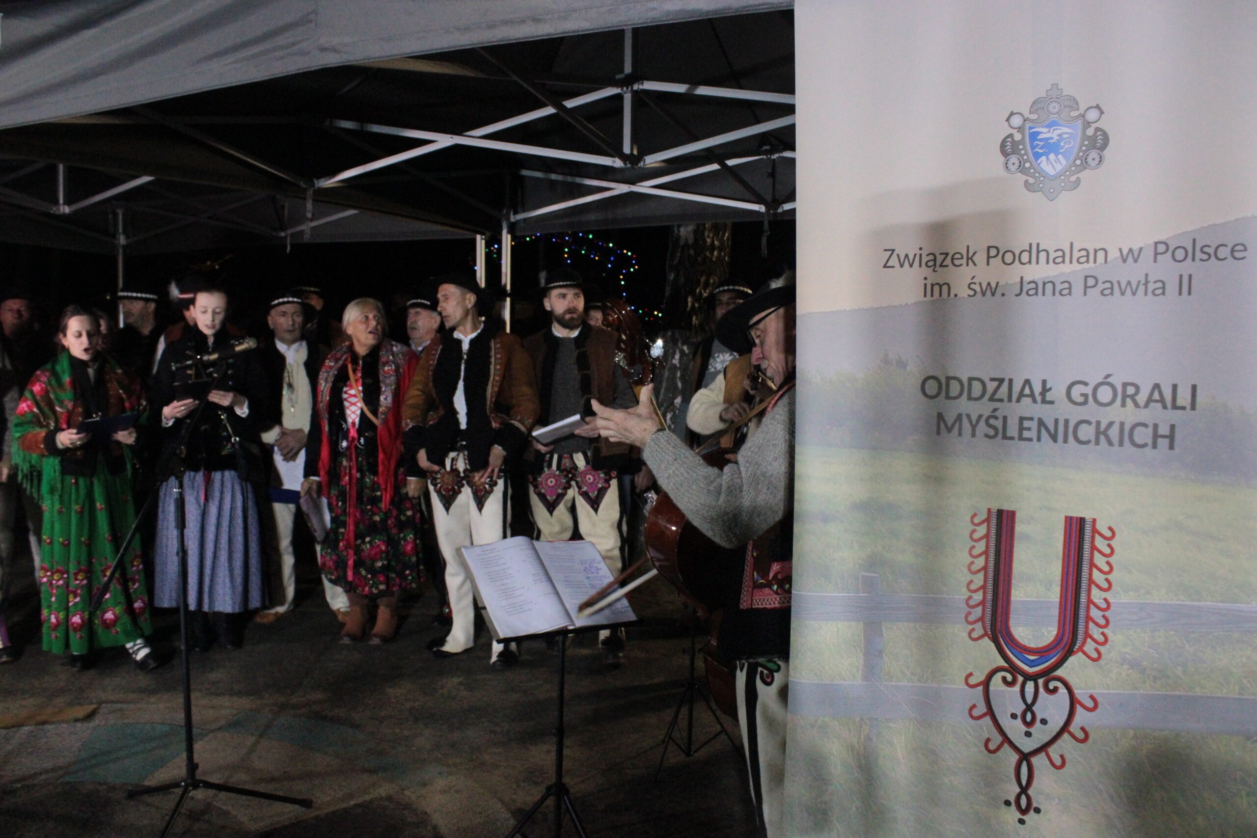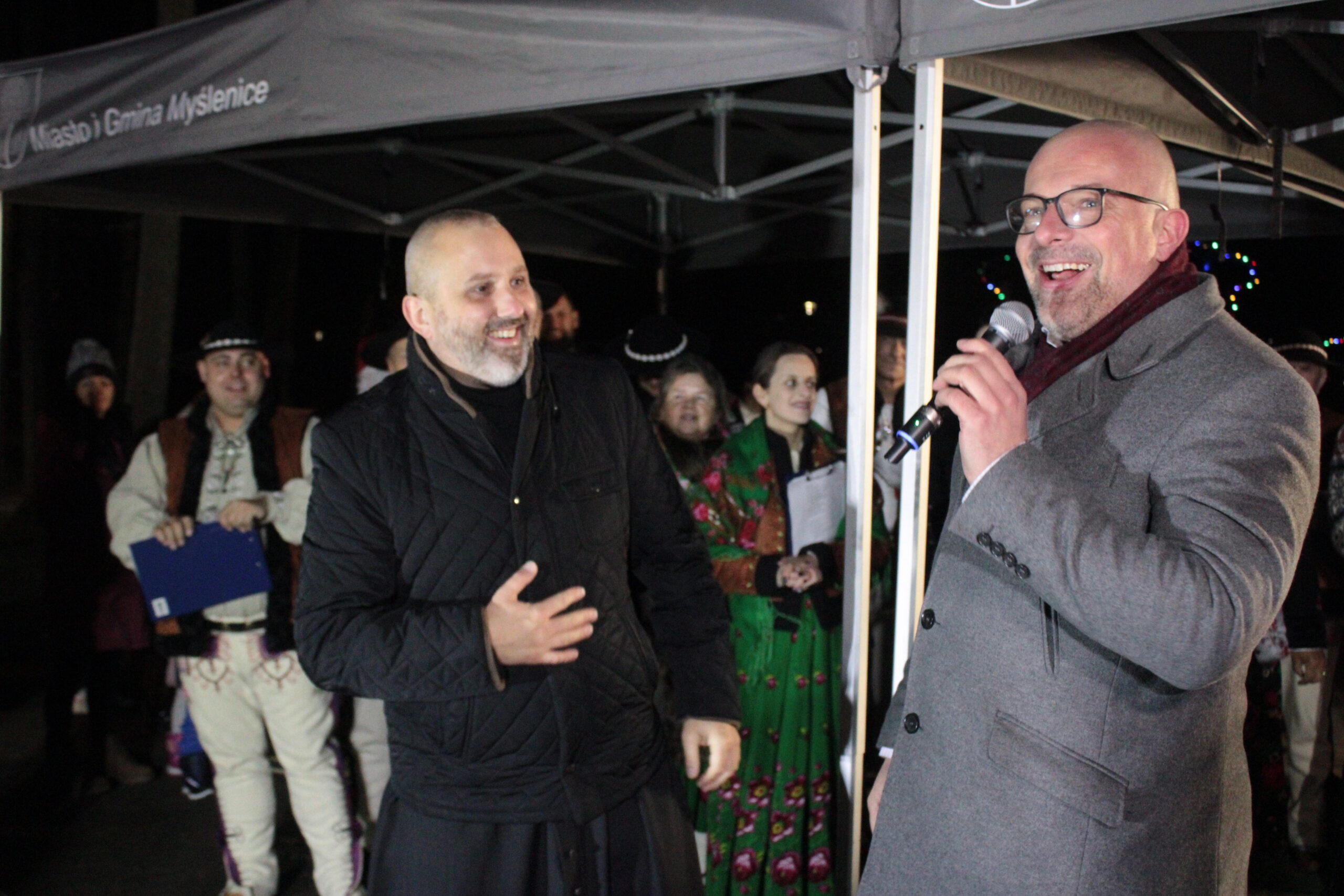 Zgromadzonych przy choince mieszkańców przywitali zastępca burmistrza Myślenic Robert Bylica, ks. Grzegorz Kurzec, proboszcz parafii pw. Św. Franciszka z Asyżu oraz Bartłomiej Czepiel, prezes oddziału Górali Myślenickich. Złożyli świąteczne życzenia, a prezes oddziału Górali, zgodnie z dawnym zwyczajem, posypał zebranych owsem.