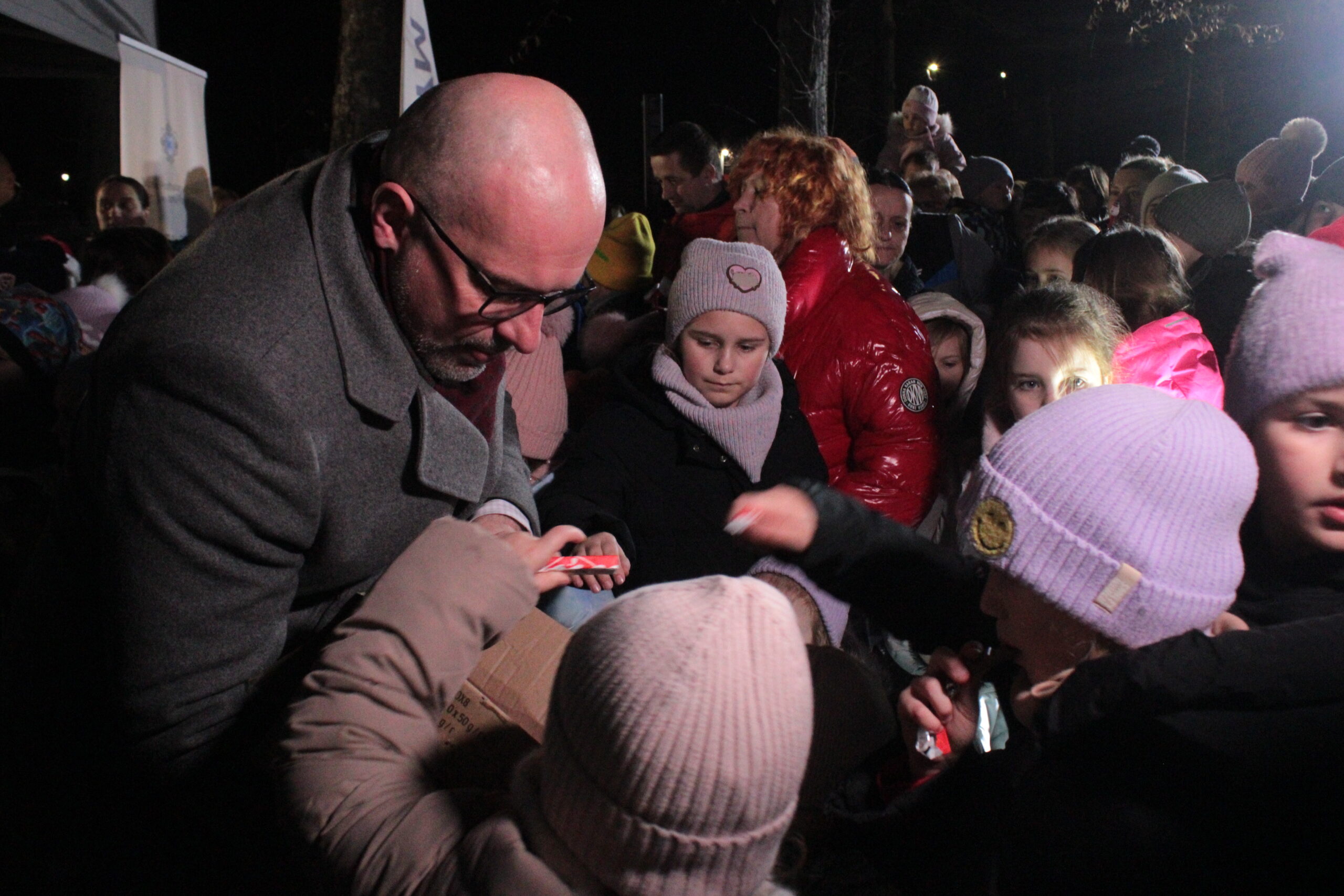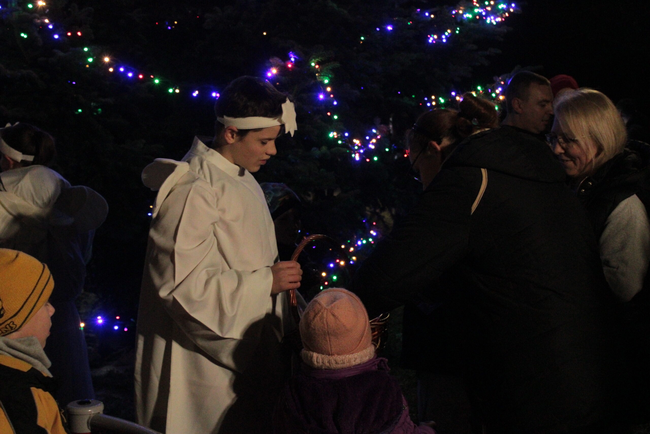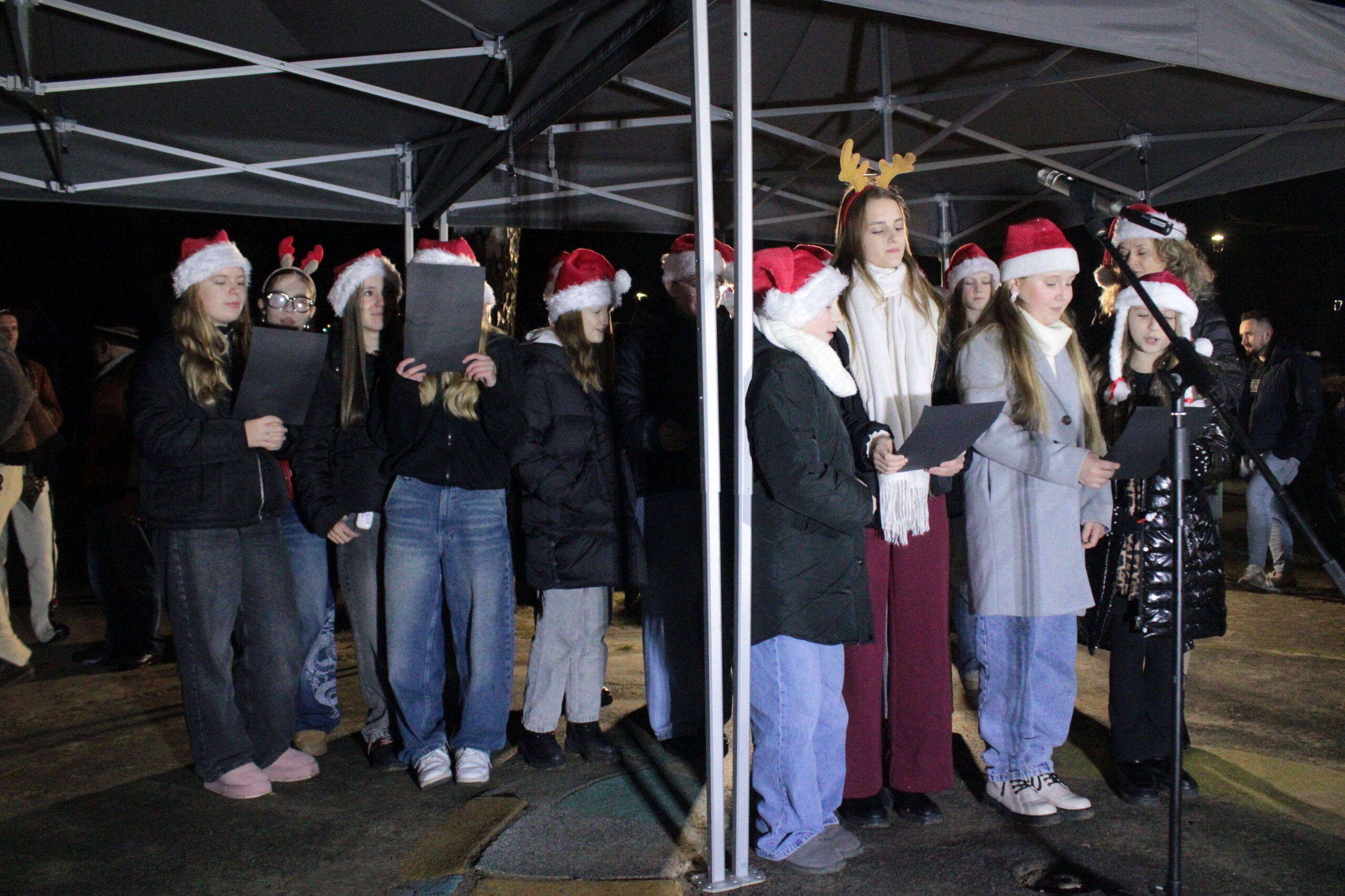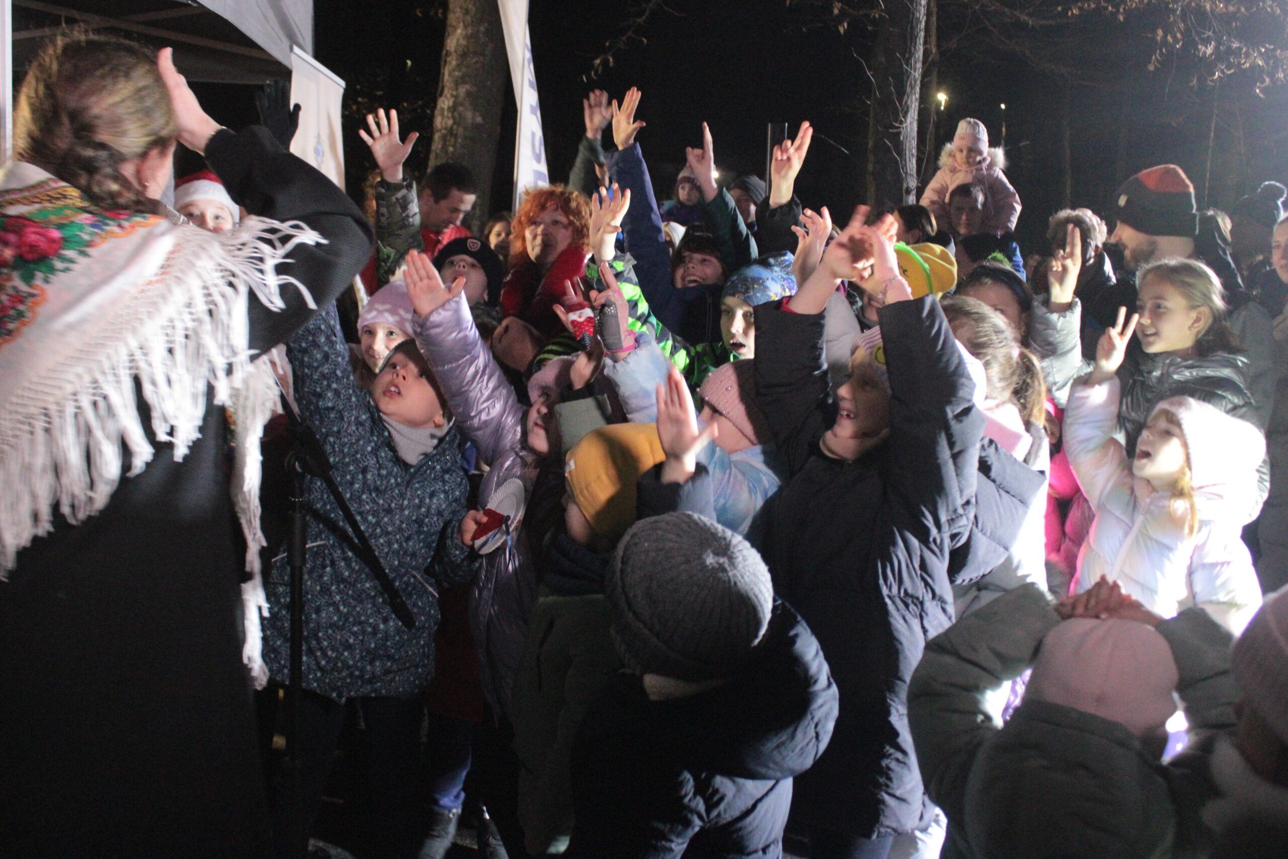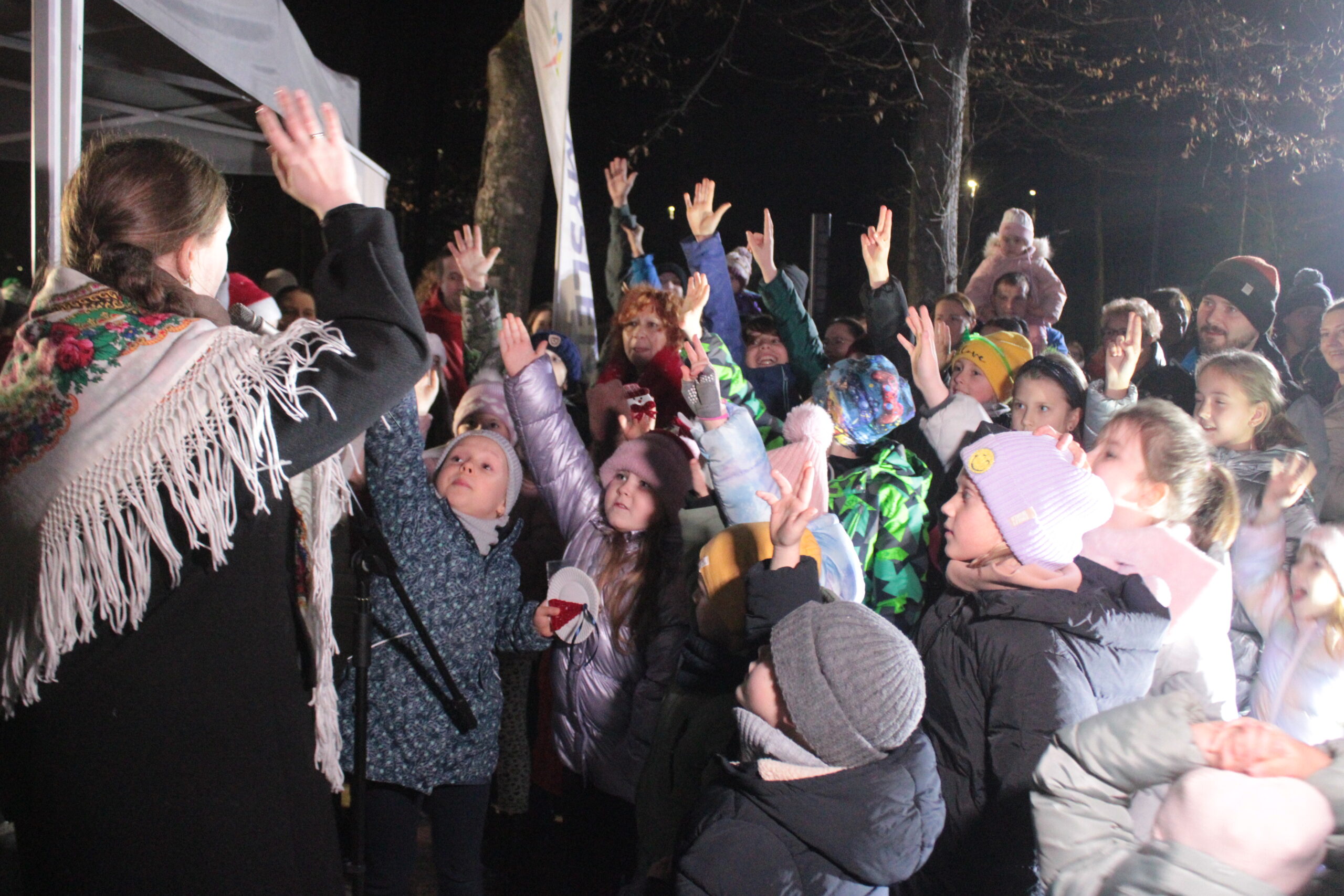 Zgromadzonych przy choince mieszkańców przywitali zastępca burmistrza Myślenic Robert Bylica, ks. Grzegorz Kurzec, proboszcz parafii pw. Św. Franciszka z Asyżu oraz Bartłomiej Czepiel, prezes oddziału Górali Myślenickich. Złożyli świąteczne życzenia, a prezes oddziału Górali, zgodnie z dawnym zwyczajem, posypał zebranych owsem.