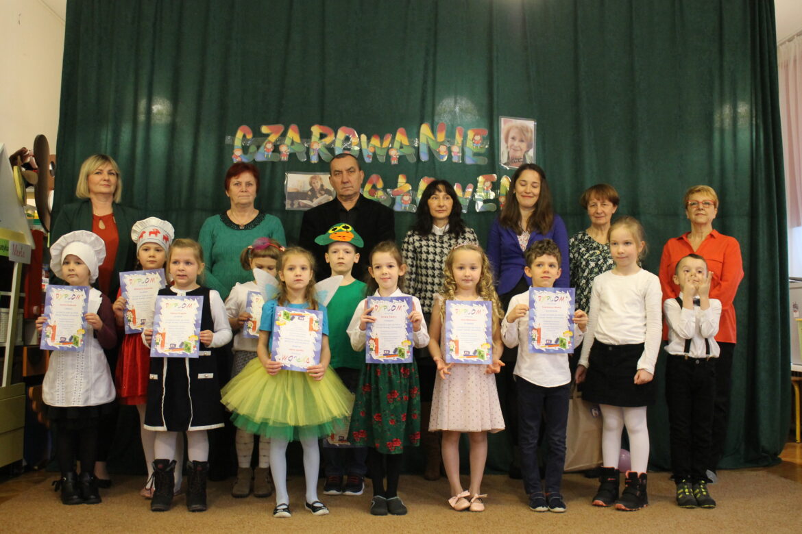 29 listopada br. W placówce odbył się Przedszkolny Gminny Konkurs Recytatorski „CZAROWANIE SŁOWEM – poezja Wandy Chotomskiej”. Do konkursu zgłosiło udział 13 placówek, co dało liczbę 35 uczestników. Dzieci, w czterech grupach wiekowych (od 3 do 6 lat), z entuzjazm prezentowały wiersze przed Komisją Konkursową. W skład sędziów wchodzili: bibliotekarka, polonistka, inspicjent teatralny, przedstawiciel Wydziału Edukacji i Zdrowia oraz dyrektor Przedszkola.
