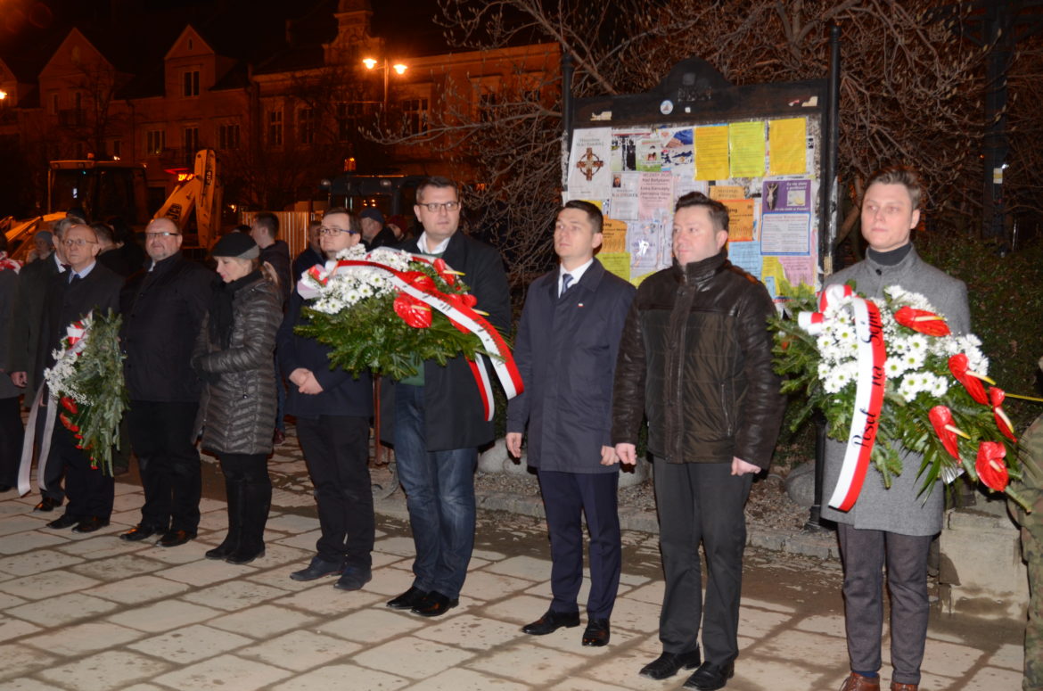 Pod pomnikiem, uczestniczące w uroczystości delegacje złożyły wieńce i zapalono znicze. hołd Żołnierzom Podziemia Niepodległościowego złożyli Burmistrz Miasta i Gminy Myślenice Jarosław Szlachetka, Przedstawiciele Posła na Sejm RP Władysława Kurowskiego, przedstawiciele środowisk i organizacji niepodległościowych, kombatanckich oraz mieszkańcy Myślenic.
