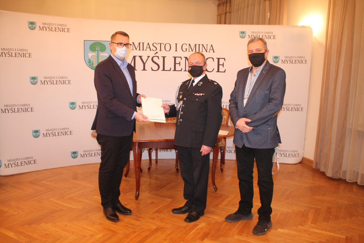 W poniedziałek 13 grudnia nastąpiło podpisanie umów na dotacje pomiędzy jednostkami OSP, a Gminą Myślenice na zakup sprzętu ratowniczego i remont centralnego ogrzewania w remizie OSP Zasań.
