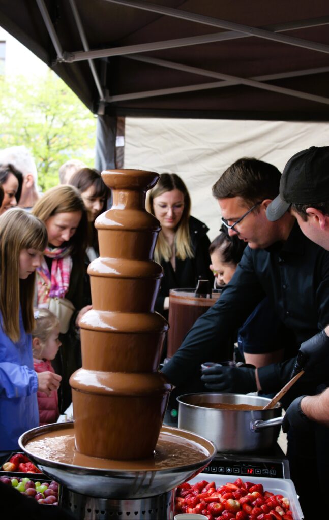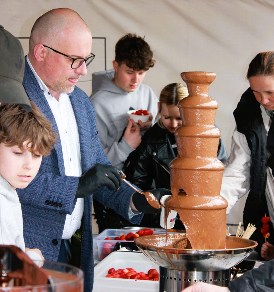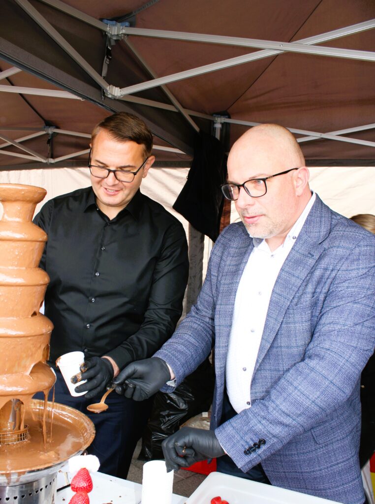 Na uczestników czekało także wiele dodatkowych atrakcji, które sprawiły, że wydarzenie było doskonałą propozycją dla całych rodzin. Najmłodsi mogli korzystać z dmuchańca i bawić się pod okiem animatorów z White Rabbit, a miłośnicy kreatywnych zajęć spróbowali swoich sił w zdobieniu ciasteczek razem z Dziennym Domem „Senior +” w Myślenicach i Klubem „Senior+” w Myślenicach. Dużym zainteresowaniem cieszyły się również czekoladowe rysunki przygotowane przez Szkołę Rysunku Zalubowski, które pozwoliły połączyć sztukę z miłością do słodkości.