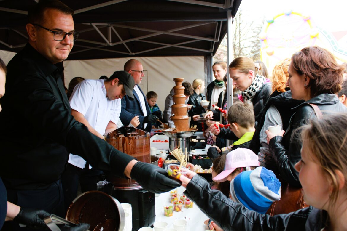 Na uczestników czekało także wiele dodatkowych atrakcji, które sprawiły, że wydarzenie było doskonałą propozycją dla całych rodzin. Najmłodsi mogli korzystać z dmuchańca i bawić się pod okiem animatorów z White Rabbit, a miłośnicy kreatywnych zajęć spróbowali swoich sił w zdobieniu ciasteczek razem z Dziennym Domem „Senior +” w Myślenicach i Klubem „Senior+” w Myślenicach. Dużym zainteresowaniem cieszyły się również czekoladowe rysunki przygotowane przez Szkołę Rysunku Zalubowski, które pozwoliły połączyć sztukę z miłością do słodkości.