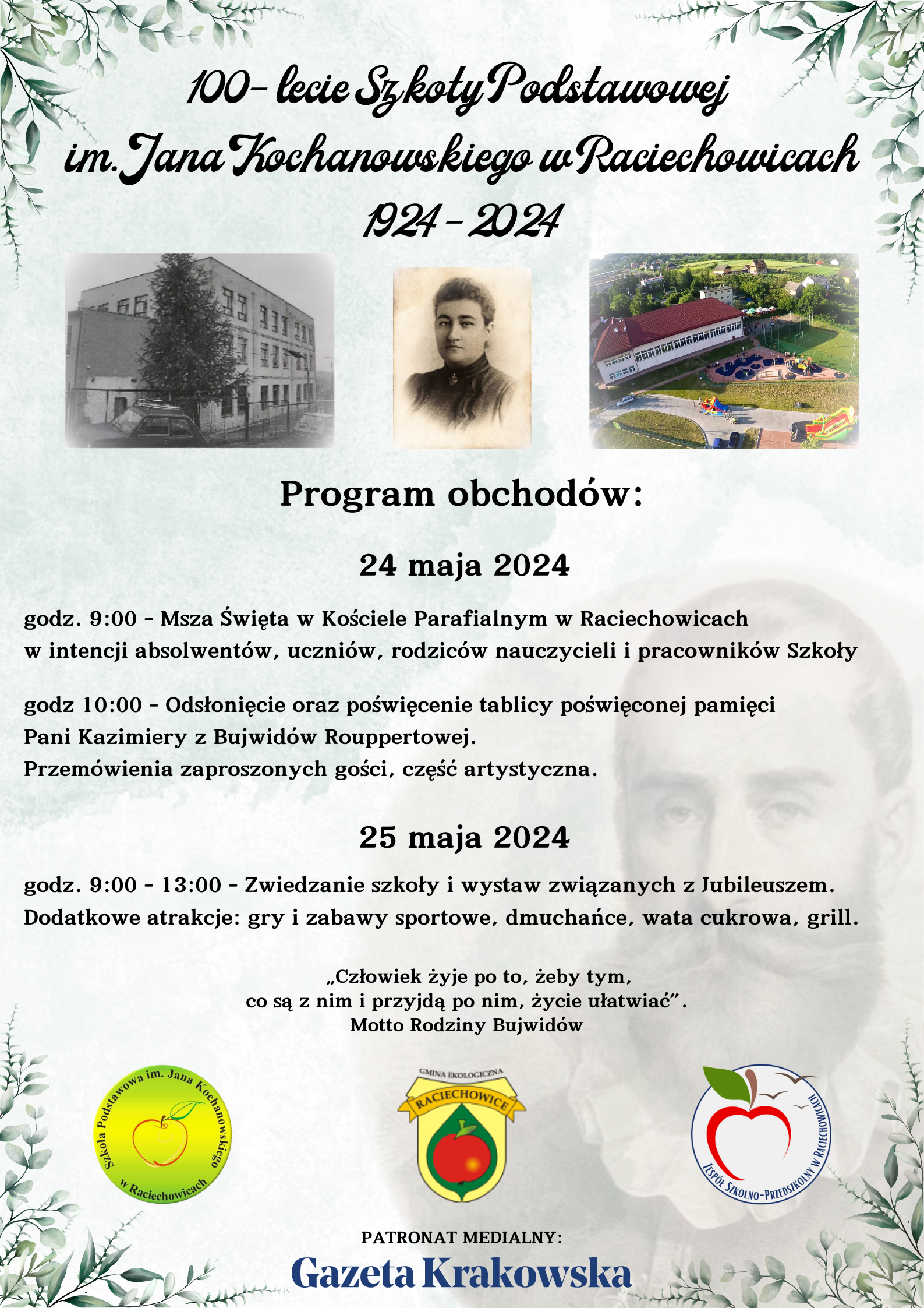 100-lecie Szkoły Podstawowej im. Jana Kochanowskiego w Raciechowicach 1924-2024