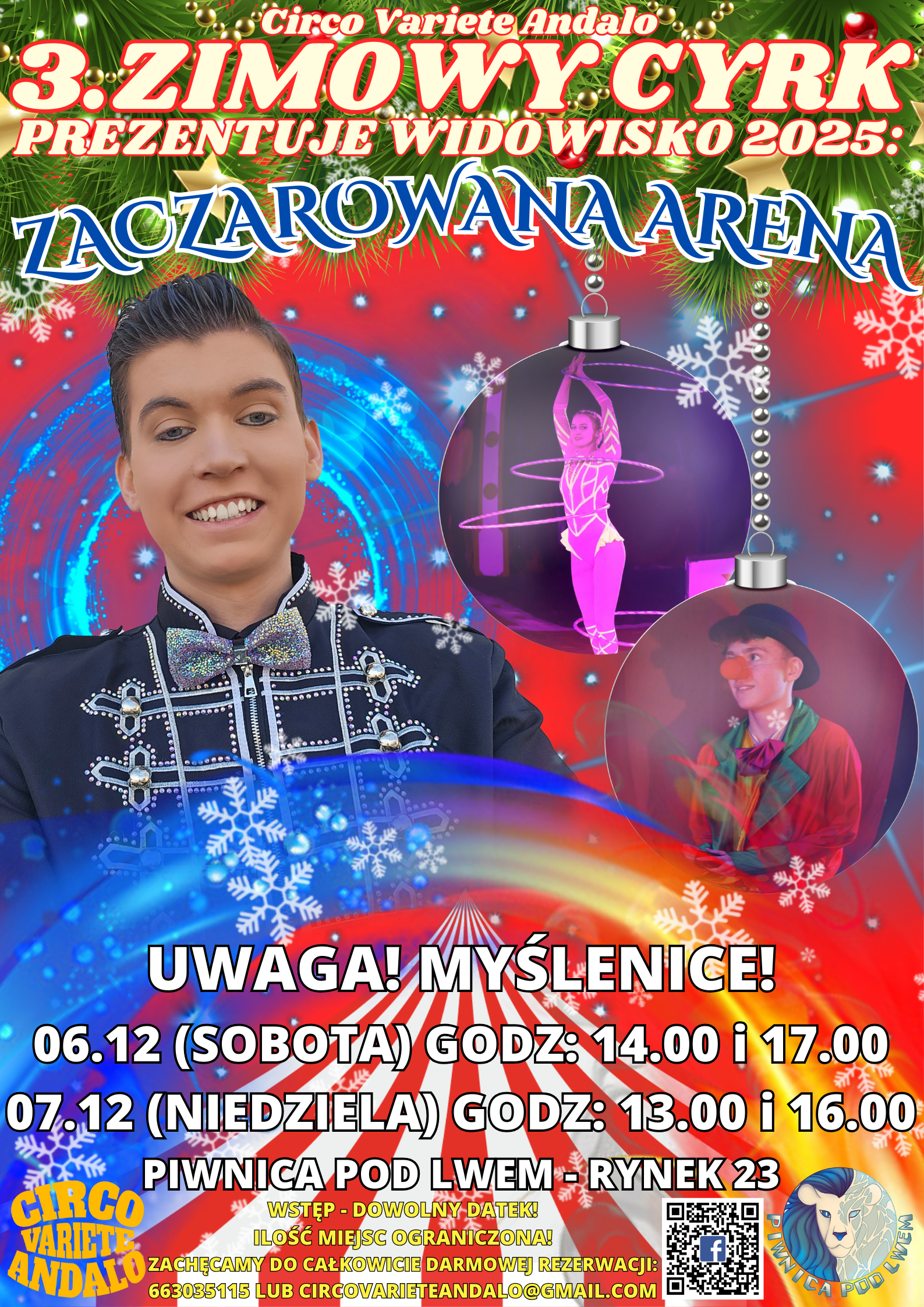 Wyjątkowy i magiczny czar Zimowego Cyrku powraca znów do Myślenic! Circo Variete Andalo zaprasza na unikalną, trzecią już edycję fantastycznego wydarzenia!