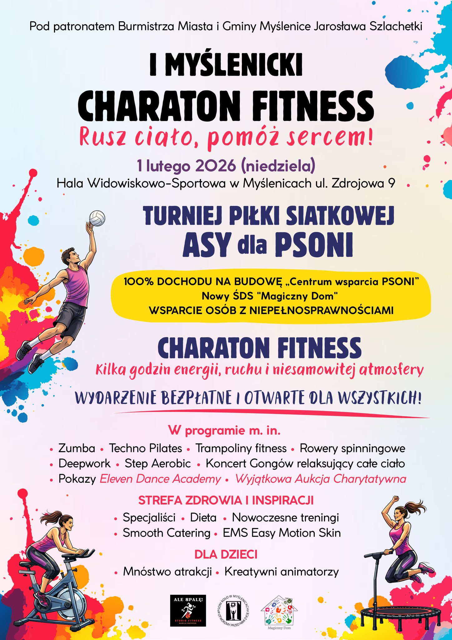 W niedzielę 1 lutego w hali widowiskowo-sportowej w Myślenicach (Zarabie) odbędzie się I Myślenicki Charaton Fitness, czyli wydarzenie łączące w sobie sport i pomaganie. Celem jest pomoc w budowie Centrum Wsparcia PSONI, czyli nowego ŚDS „Magiczny Dom”.