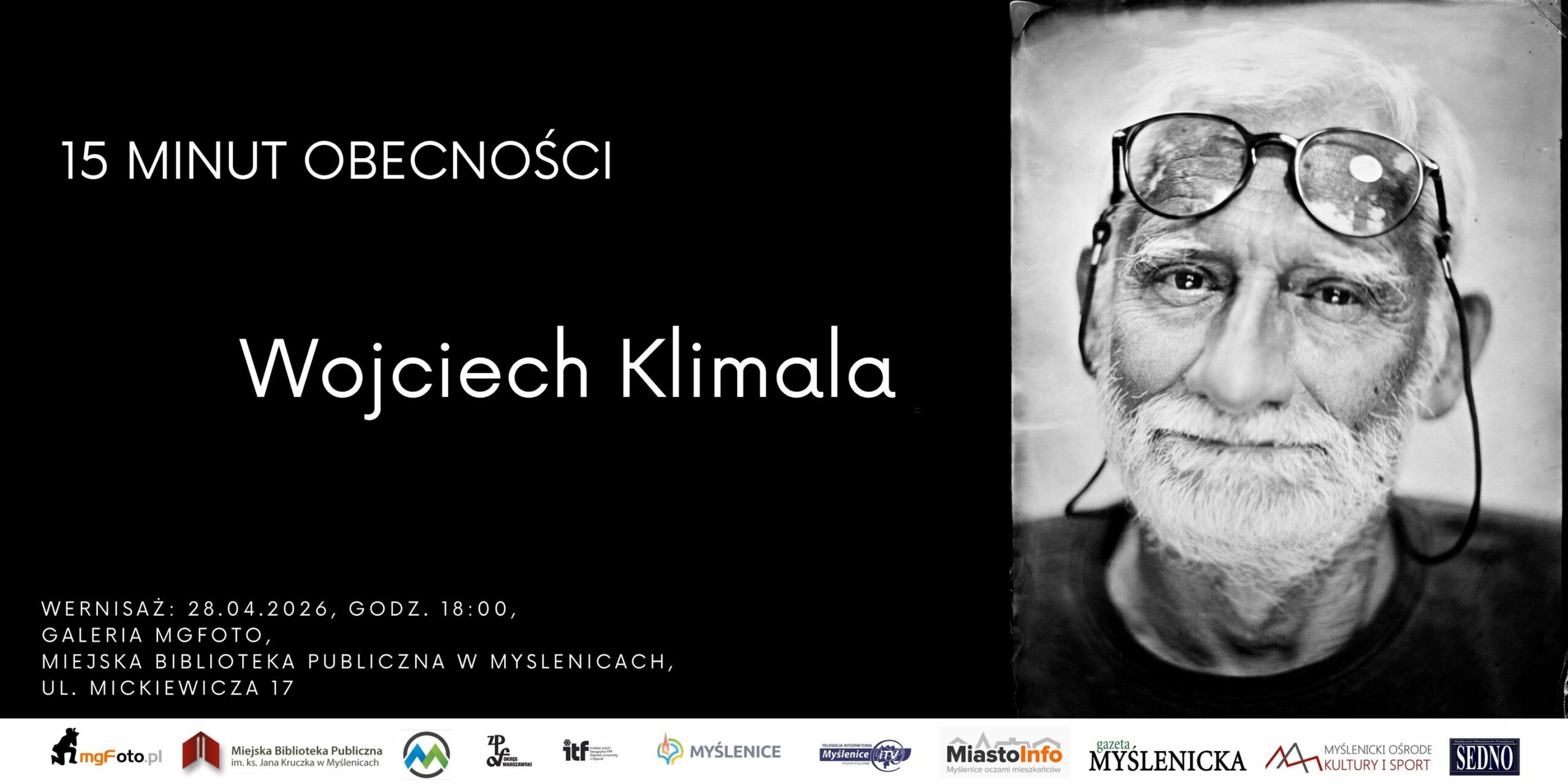 We wtorek 28 kwietnia o godz. 18 w galerii mgFoto w Miejskiej Bibliotece Publicznej w Myślenicach odbędzie się wernisaż wystawy Wojciecha Kimali zatytułowanej „15 minut obecności”. Kuratorem wystawy jest Piotr Spek.