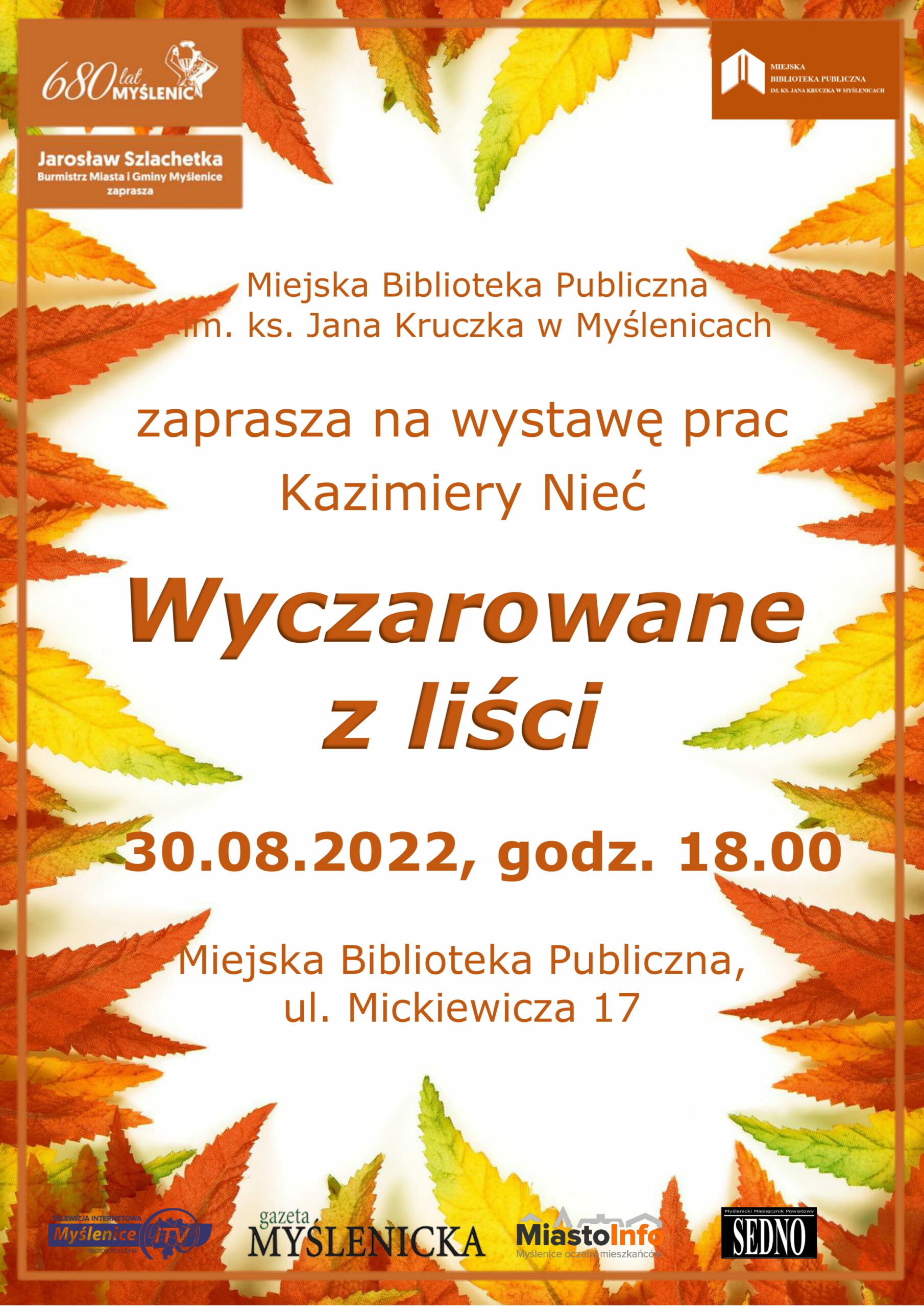 Wyczarowane z Liści. Wystawa Kazimiery Nieć+ Dodaj do Google Calendar+ eksport iCal Data30 sie 2022 - 30 wrz 2022 Czas 18:00Poleć to wydarzenie