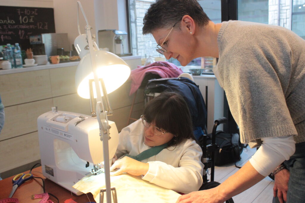 Dobiega końca projekt „Nić porozumienia – integracja przy szyciu” zainicjowany przez Stowarzyszenie Osób Niepełnosprawnych Gminy Myślenice, a dofinansowany w ramach programu Moc Małopolskich Społeczności. Przez kilka tygodni 20 osób, w tym osoby z niepełnosprawnościami spotykało się w myślenickiej Kawiarni Społecznej, aby pod okiem profesjonalistów uczyć się podstaw szycia na maszynie.