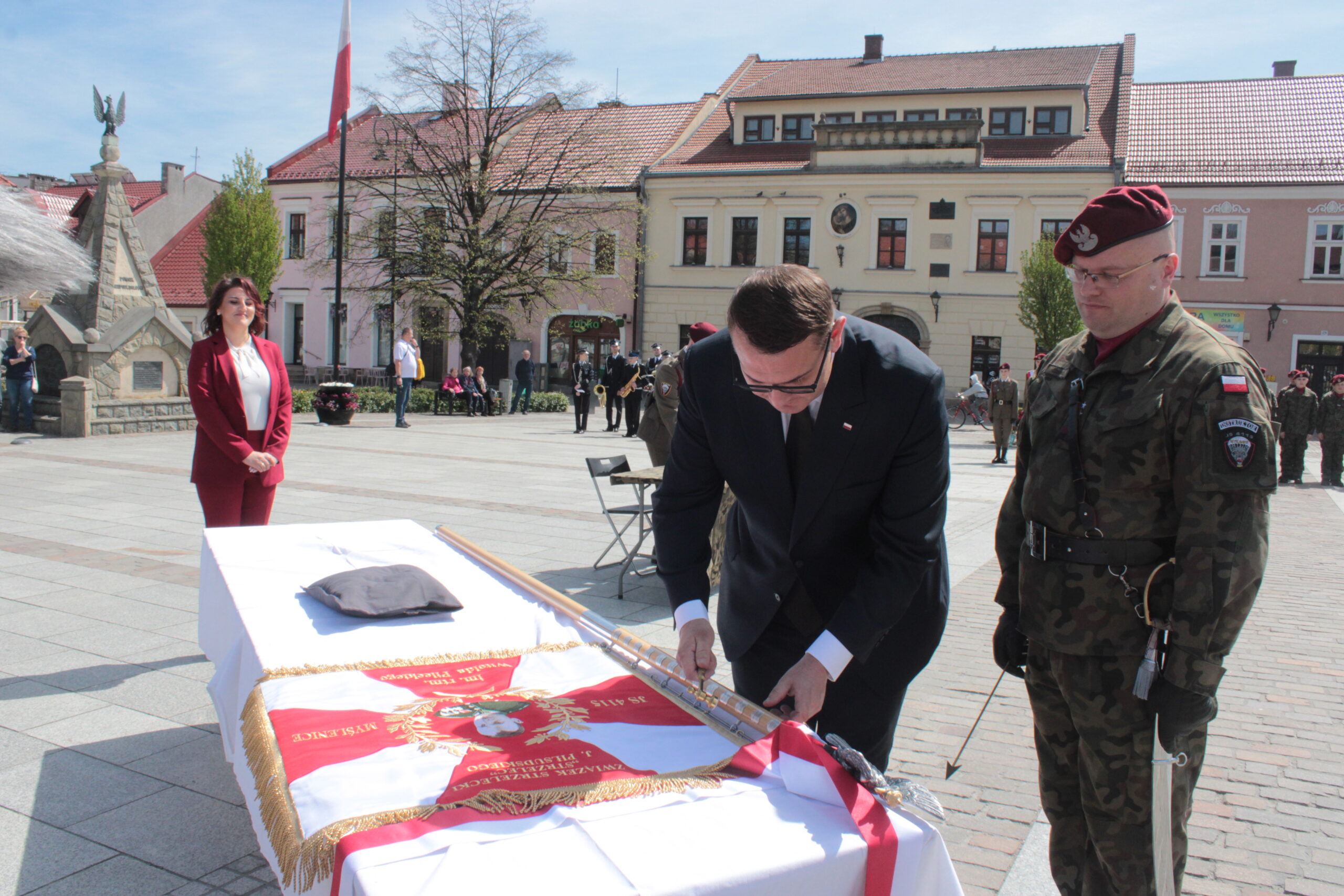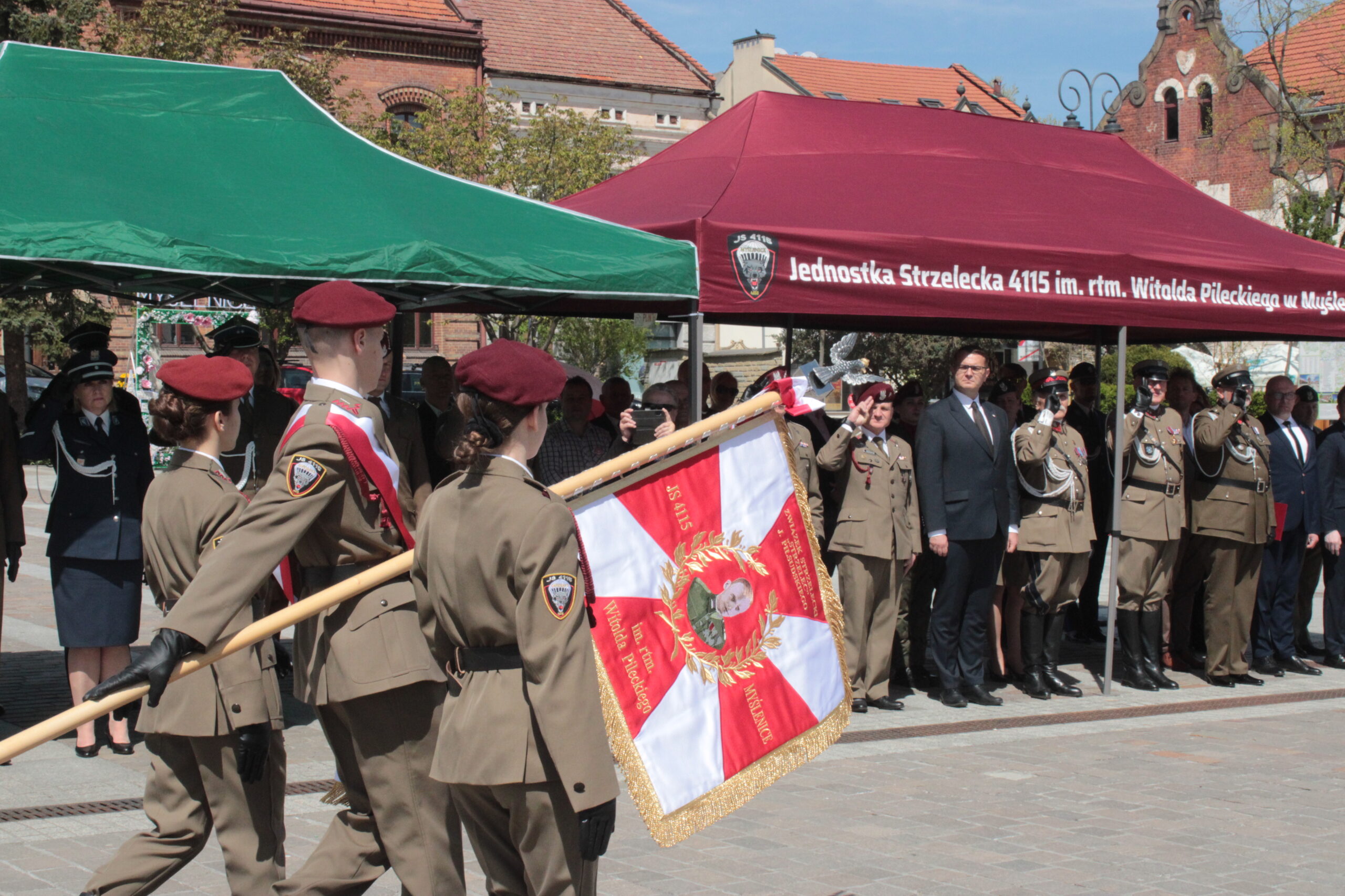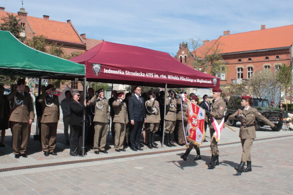 Działająca od ponad dwóch lat w Myślenicach Jednostka Strzelecka 4115 im. rtm. Witolda Pileckiego przyjęła sztandar. Uroczystość nadania go jej i poświęcenia odbyła się w sobotę 25 kwietnia na myślenickim Rynku, a wzięli w niej udział m.in. władze gminy Myślenice, która była fundatorem sztandaru, przedstawiciele służb mundurowych i organizacji proobronnych oraz prawnuk patrona myślenickiej jednostki rtm. Witolda Pileckiego – Krzysztof Kosior.