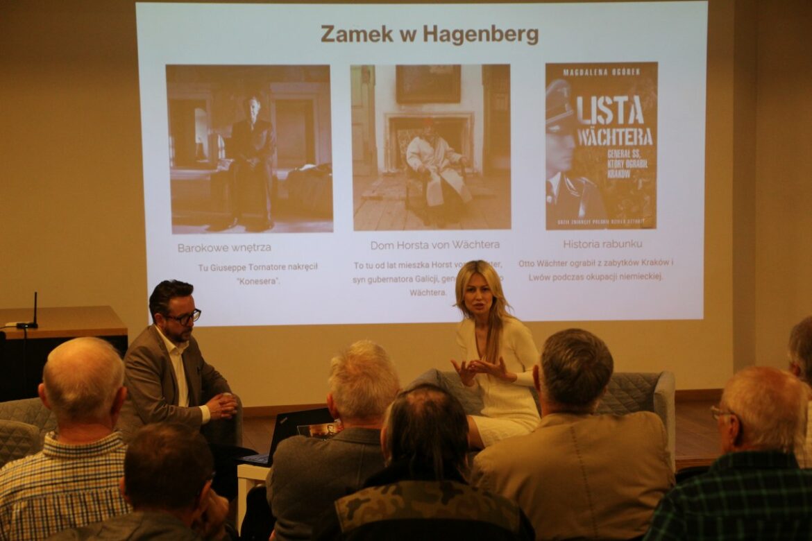 Spotkanie odbyło się w gościnnych progach Muzeum Niepodległości, a autorkę przywitał burmistrz Jarosław Szlachetka. Historia opowiadana przez Magdalenę Ogórek była tak wciągająca, że przybyli na spotkanie mieszkańcy byli całkowicie nią pochłonięci. Autorka opowiadała najpierw o swojej wcześniejszej książce pt. „Lista Wachtera”, o podążaniu tropem tego zbrodniarza, który jak wielu innych uniknął kary oraz o odkrywaniu grabieży jakich Otto von Wachter wraz ze swoją małżonką dokonali w Krakowie i całej Galicji. M.in. opowiadała o spotkaniu z ich synem, który pod wpływem jej perswazji zwrócił Polsce trzy zagrabione przez rodziców cenne obrazy.