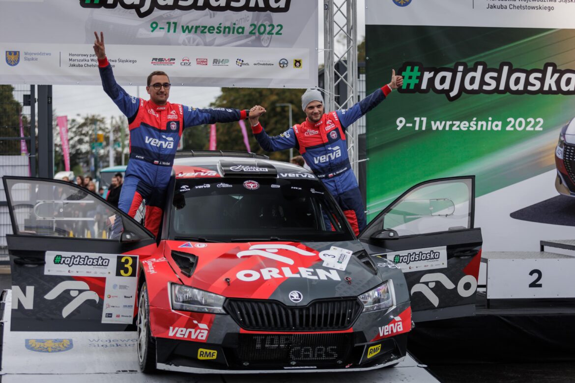 Kacper Wróblewski i Jakub Wróbel zdobyli 3. miejsce w klasyfikacji generalnej Rajdu Śląska. Załoga ORLEN Team na 8 z 12 odcinków zdobyła oesowe podium. Pierwszy sobotni etap rajdu, mimo deszczowych prognoz, zawodnicy ścigali się w słonecznej aurze. Z kolei niedziela to walka w bardzo ciężkich warunkach przy mocnych opadach deszczu i dużym błocie.