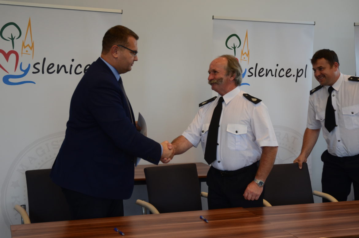 Przedstawiciele ośmiu jednostek Ochotniczych Straży Pożarnych z terenu Gminy Myślenice podpisali umowy na dofinansowanie z gminnego budżetu na sfinalizowanie zakupu sprzętu w ramach środków otrzymanych z programów Województwa Małopolskiego, Wojewódzkiego Funduszu Ochrony Środowiska i Gospodarki Wodnej w Krakowie, Ministerstwa Spraw Wewnętrznych i Administracji, Krajowego Systemu Ratowniczo-Gaśniczego oraz PKN Orlen.