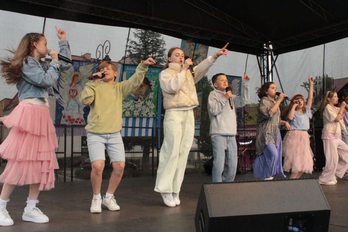 Druga część niedzielnych obchodów jubileuszu 700-lecia parafii Narodzenia NMP w Myślenicach upłynęła pod znakiem muzyki i śpiewu. Nieraz był to śpiew wspólny z artystami tak jak na przykład wtedy, kiedy zespół Małe TGD zaśpiewał swój „Dzień Dziecka”. Nie można też zapomnieć o tańcu, bowiem część publiczności dawała upust radości tańcząc w deszczu. Oprócz tej formacji na scenie wystąpiły myślenickie zespoły takie jak Schola Różyczki Pani Myślenickiej, Chór Hura pod dyrekcją Magdaleny Starzec i QL Dixie Band. Na krótko przed rozpoczęciem koncertów wręczono nagrody laureatom i wyróżnionym w dwóch konkursach ogłoszonych z okazji jubileuszu.