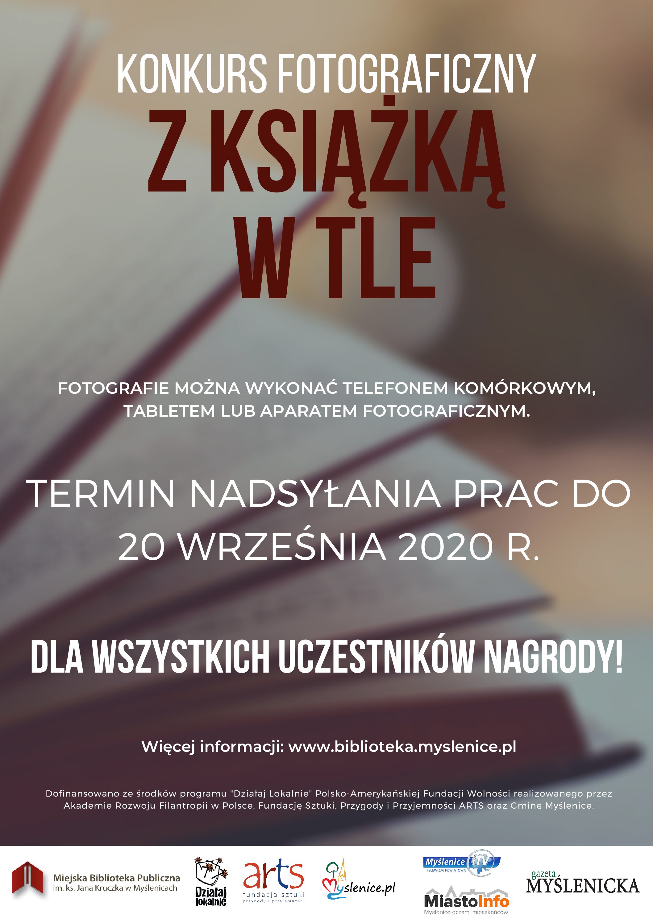 Grupa „Pod Lipką” działająca przy Miejskiej Bibliotece Publicznej im. ks. Jana Kruczka w Myślenicach w ramach konkursu grantowego „Działaj Lokalnie” ogłaszają Konkurs „Z książką w tle”.