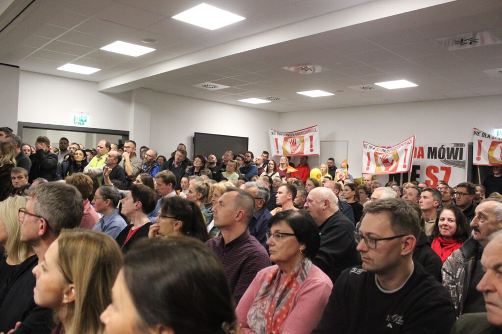 Pod koniec spotkania, po kolejnych niewyjaśnionych kwestiach i braku jednoznacznych odpowiedzi, cała sala wspólnie skandowała: „Nie dla S7!”.