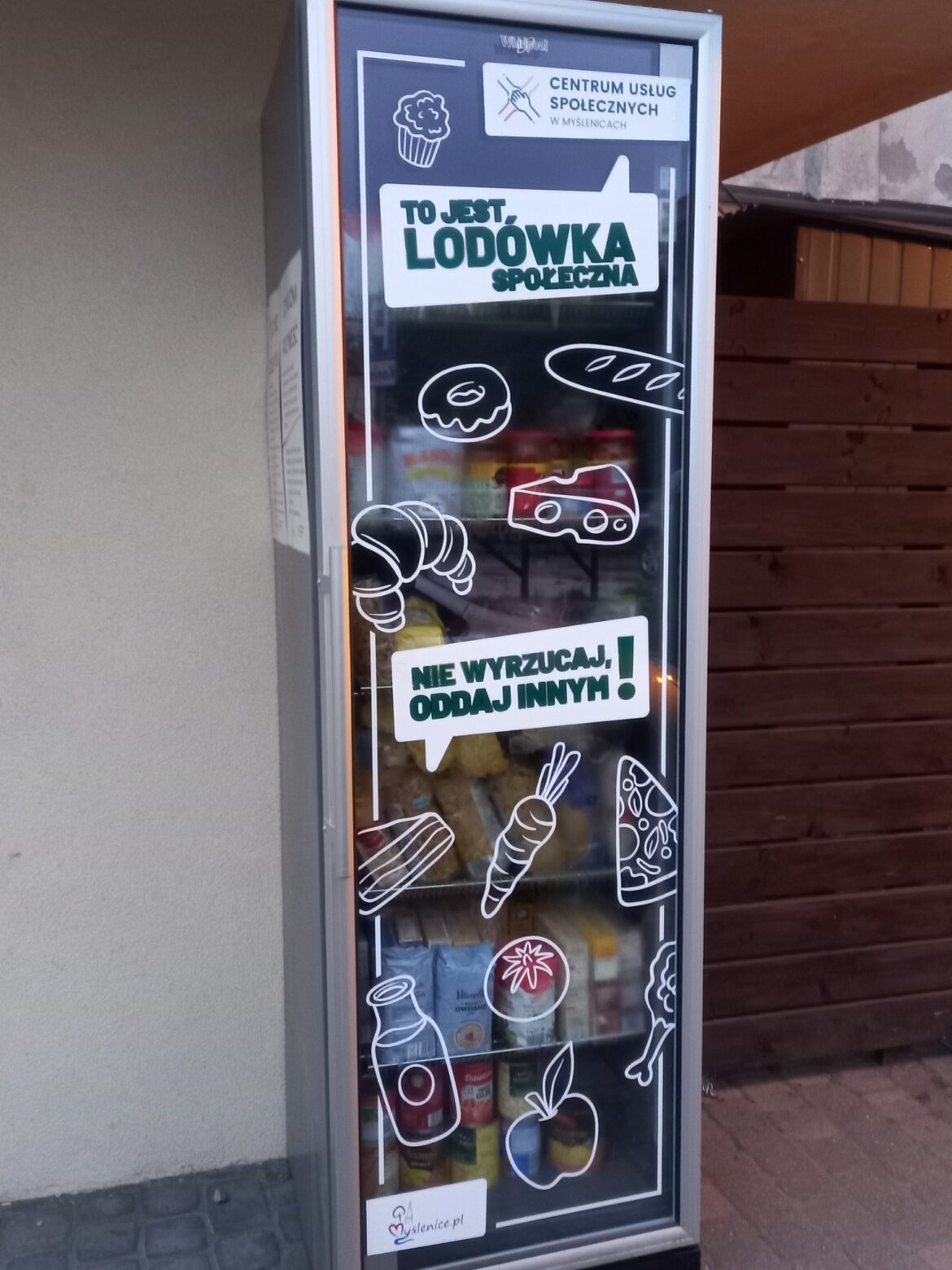 Lodówka społeczna to wspólna inicjatywa gminy Myślenice i gminnego Centrum Usług Społecznych w Myślenicach. Działa od grudnia zeszłego roku, czyli już blisko od roku. Powstała z myślą o osobach potrzebujących i o tym, żeby przeciwdziałać marnowaniu żywności, można w niej bowiem zostawić nie tylko produkty w oryginalnych sklepowych opakowaniach, ale też to co zostało nam np. ze świątecznego stołu albo rodzinnej imprezy, a jest nadal świeże albo po prostu przelaną do słoika zupę, której ugotowaliśmy za dużo. Z pozostawionych w lodówce artykułów mogą korzystać wszyscy, ale wiadomo, że taka pomoc najbardziej potrzebna jest tym, którzy mają najmniej. Dlatego właśnie teraz, przed zbliżającą się zimą, a więc czasem, który osobom w trudnej sytuacji materialnej najtrudniej jest przetrwać, bo mają inne pilne wydatki, np. na opał, uczniowie ze Szkolnego Koła Wolontariatu działającego w myślenickiej „trójce” postanowili zadbać o to, aby lodówka była zawsze pełna i nikt głodny nie odszedł od niej „z kwitkiem”.