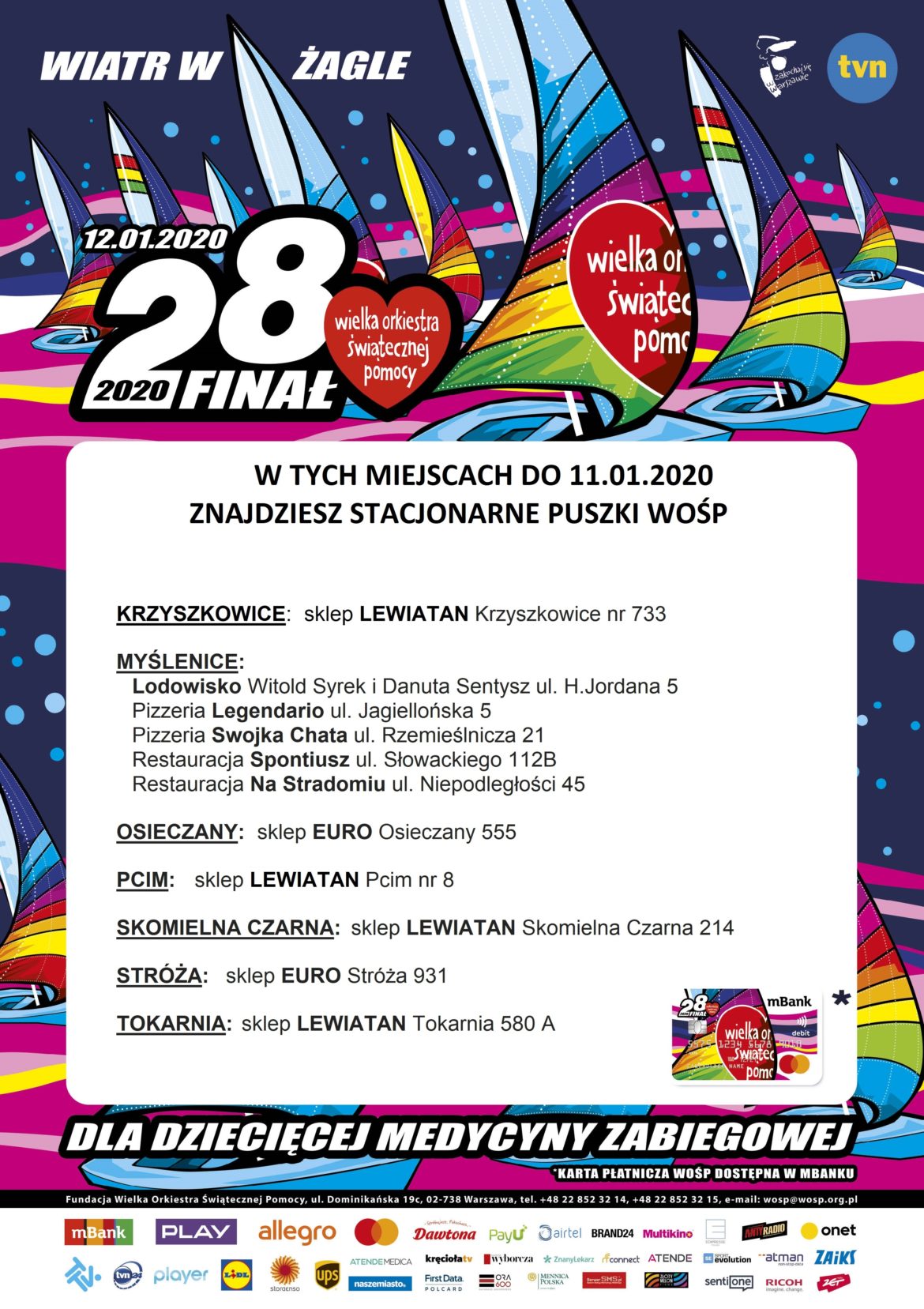 W powiecie myślenickim stacjonarne puszki WOŚP zlokalizowane zostaną: