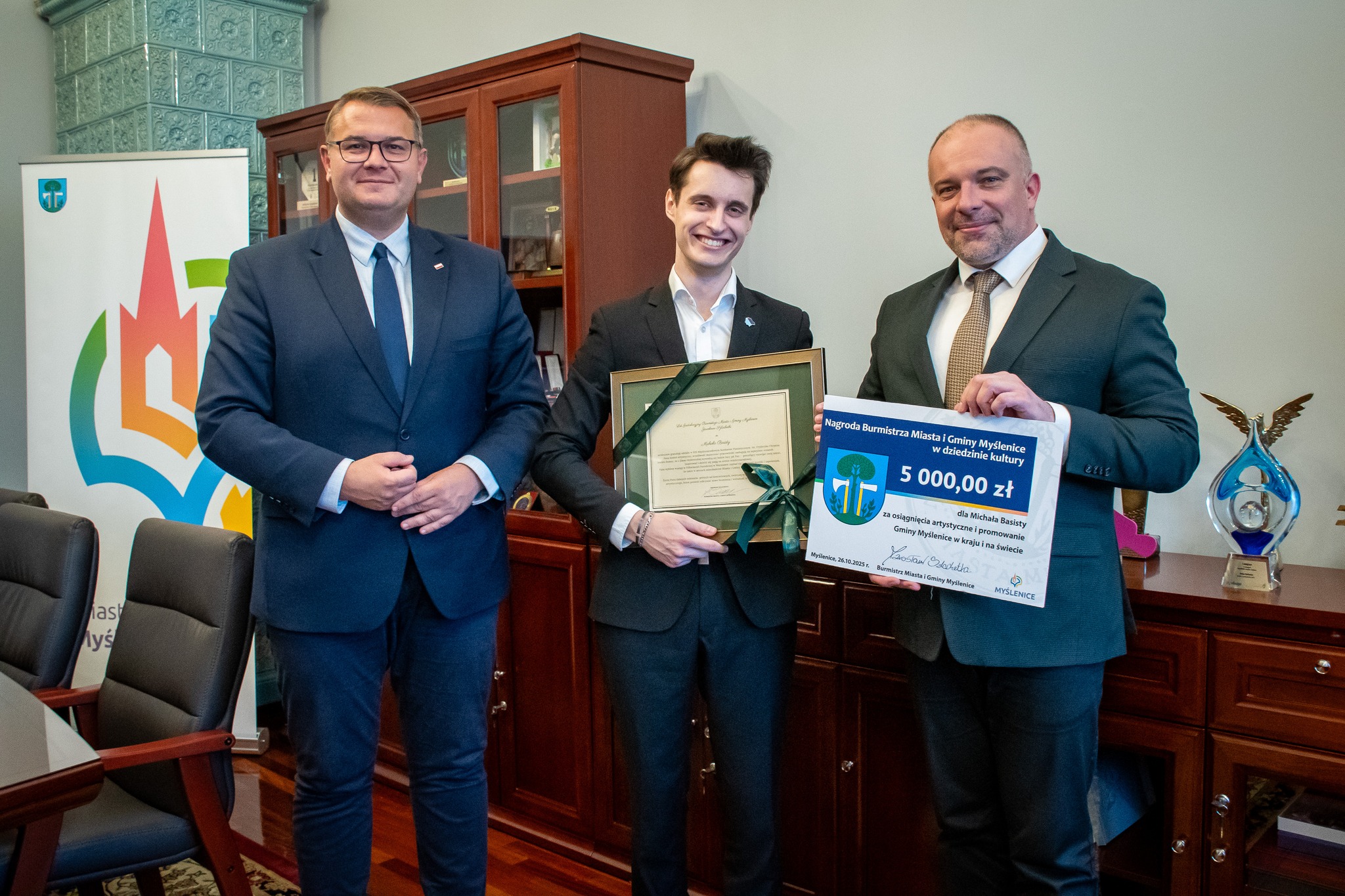 Michał Basista, pochodzący z Myślenic młody pianista i uczestnik niedawno zakończonego XIX Międzynarodowego Konkursu Pianistycznego im. Fryderyka Chopina, odebrał z rąk burmistrza tego miasta Jarosława Szlachetki nagrodę w dziedzinie kultury.