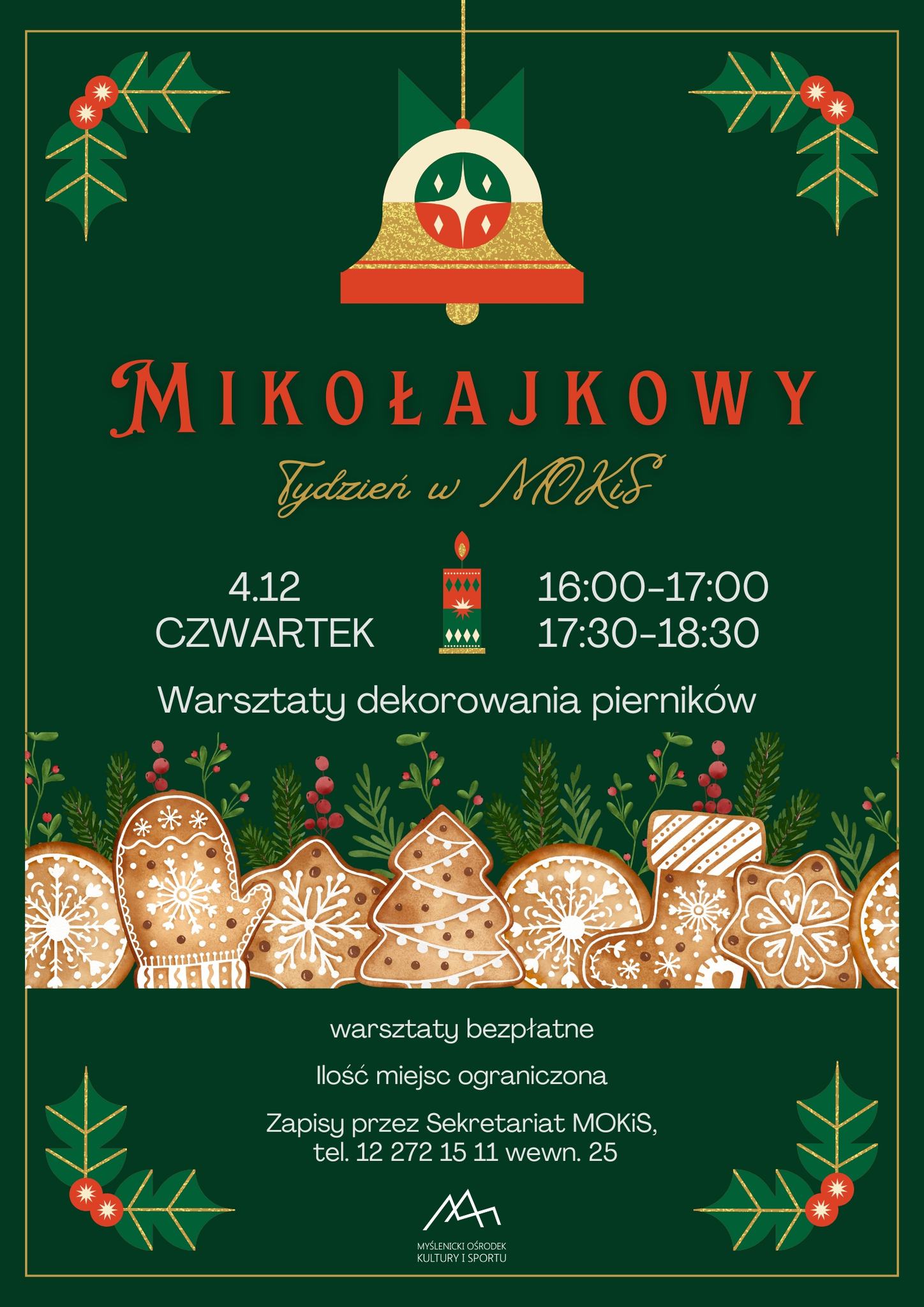 - warsztaty pieczenie pierników (czwartek 4 grudnia o godz. 16 i 17.30)