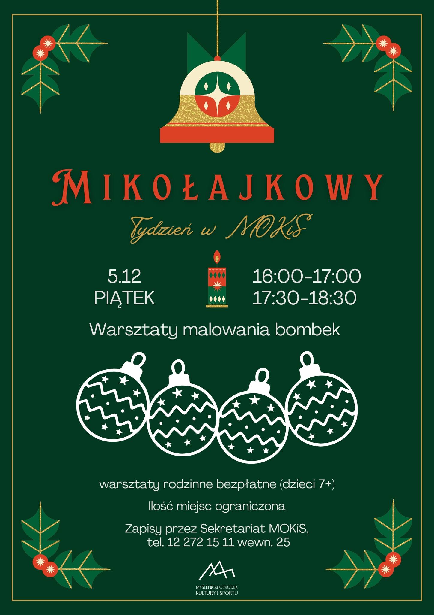 - warsztaty malowania bombek (piątek 5 grudnia o godz. 16 i 17.30).