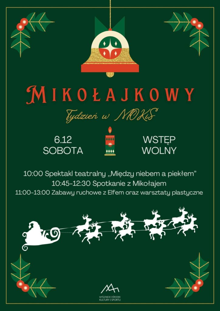 Najwięcej atrakcji czeka na dzieci w sobotę 6 grudnia. O godz. 10 będzie można obejrzeć spektakl „Między niebem a piekłem”. Po nim, od 10.45 do 12.30 będzie się można spotkać ze Świętym Mikołajem, a między 11 a 13 wziąć udział w zabawach ruchowych z Elfem lub w warsztatach plastycznych.