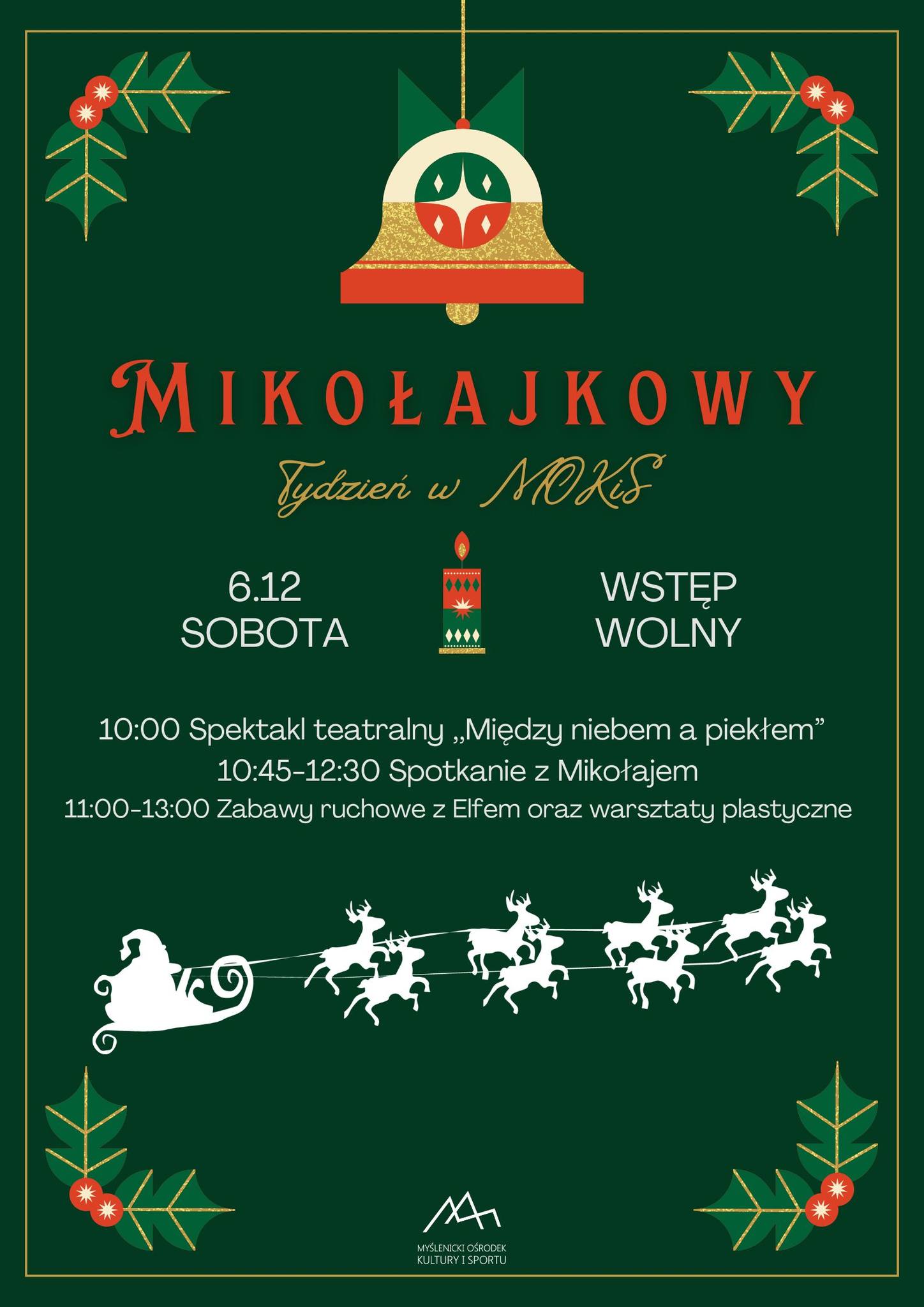 Przed nami Mikołajki, a w Myślenickim Ośrodku Kultury i Sportu Mikołajkowy Tydzień już trwa od poniedziałku o czym można się przekonać już od progu, bowiem hol MOKIS przypomina Mikołajową wioskę.