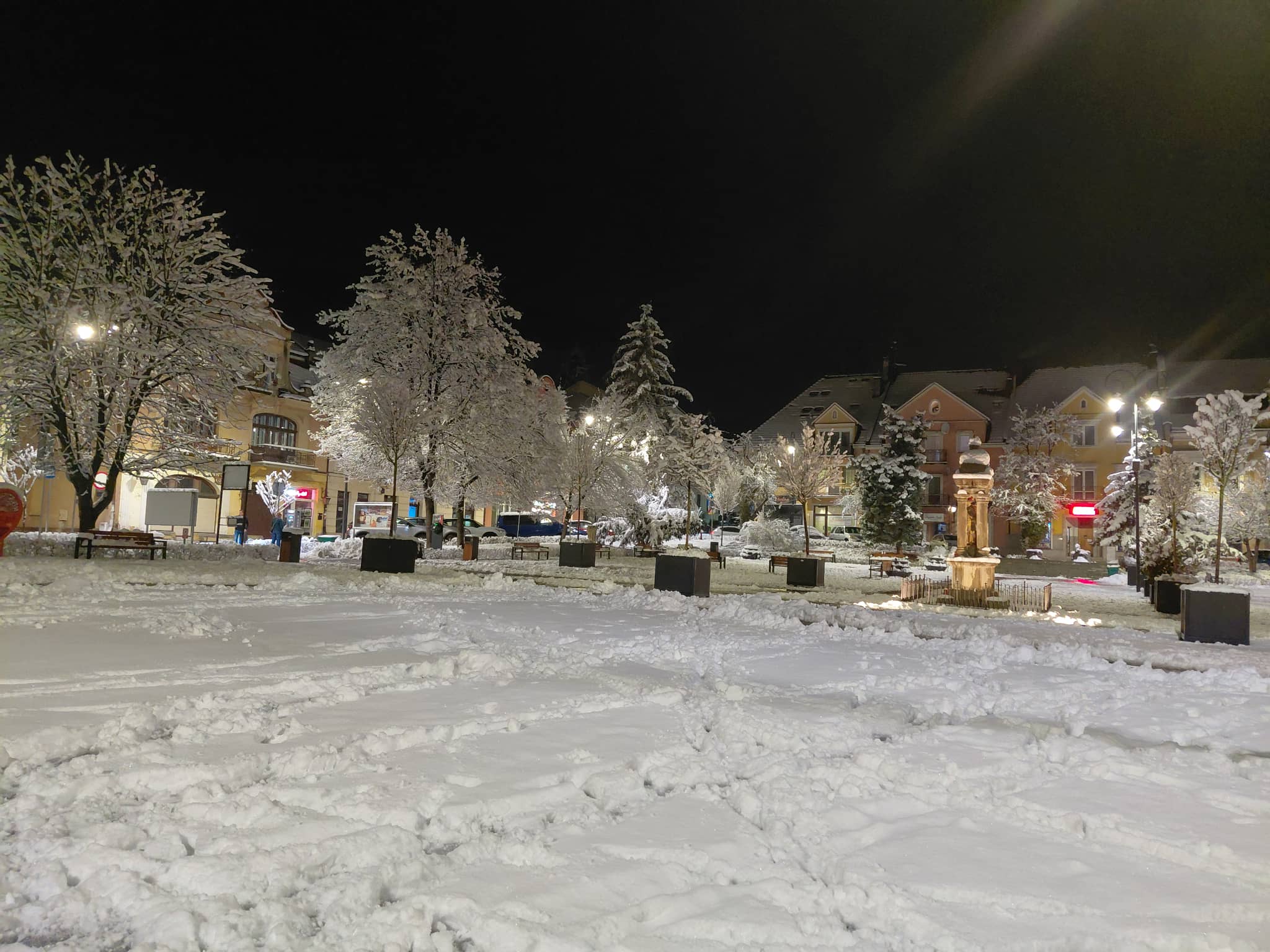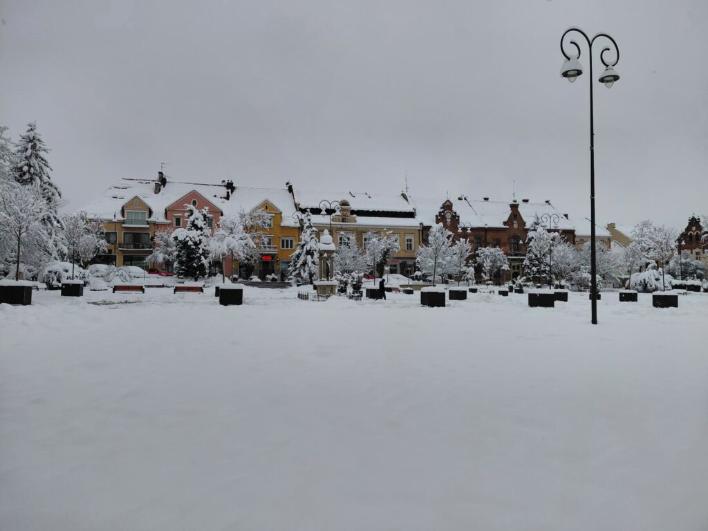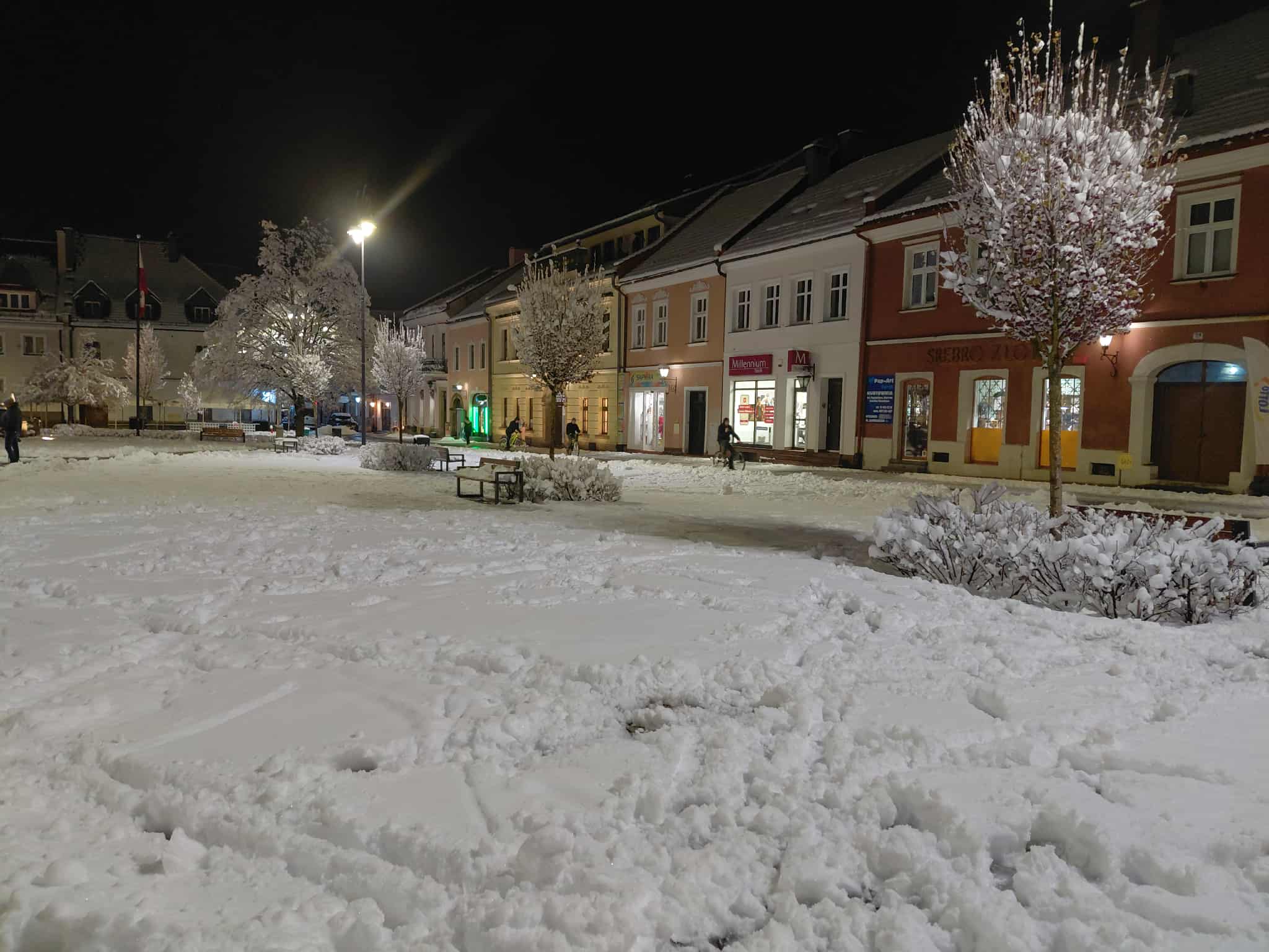 Takich ilości śniegu dość dawno nie w Myślenicach i okolicy nie widziano. Najwięcej frajdy sprawił najmłodszym, którzy mieli okazję odbyć pierwsze w tym sezonie przejażdżki na sankach, mniej kierowcom i strażakom, którzy mierzyli się ze skutkami tak obfitych opadów. Prognozy mówią, że nowy tydzień, jeśli chodzi o temperaturę powietrza, ma się zacząć na niewielkim, ale jednak plusie, więc czekają nas roztopy. Tym bardziej zachęcamy zerknąć na myślenicki Rynek, który przez mijający weekend prezentował się tak – cały na biało.