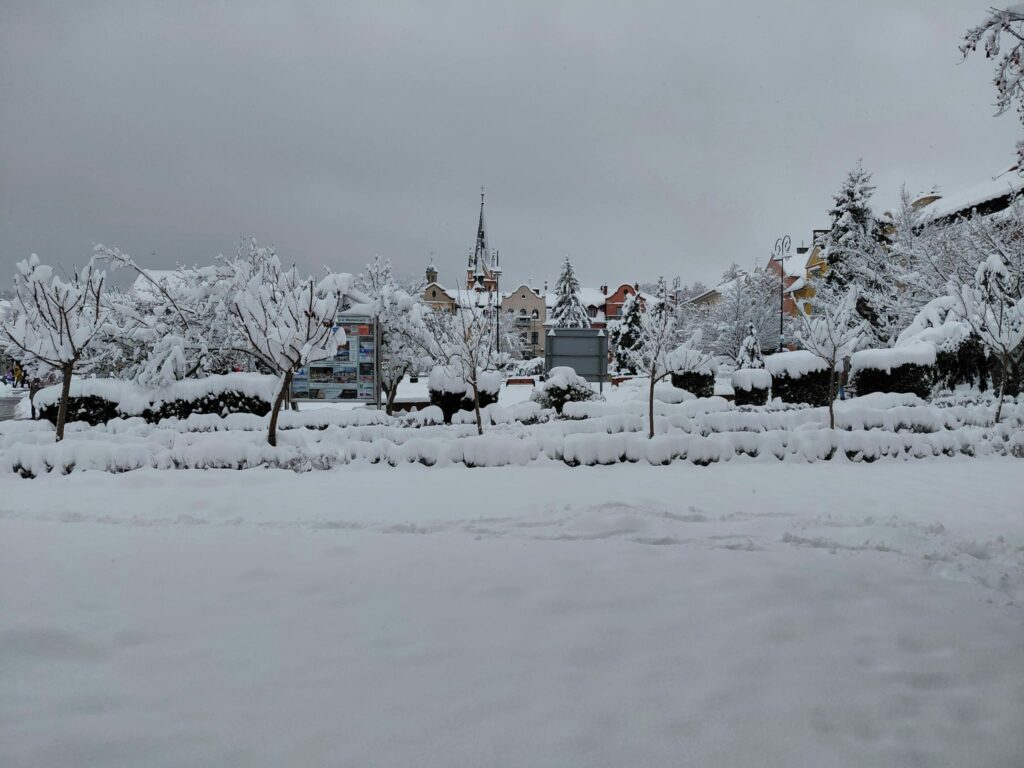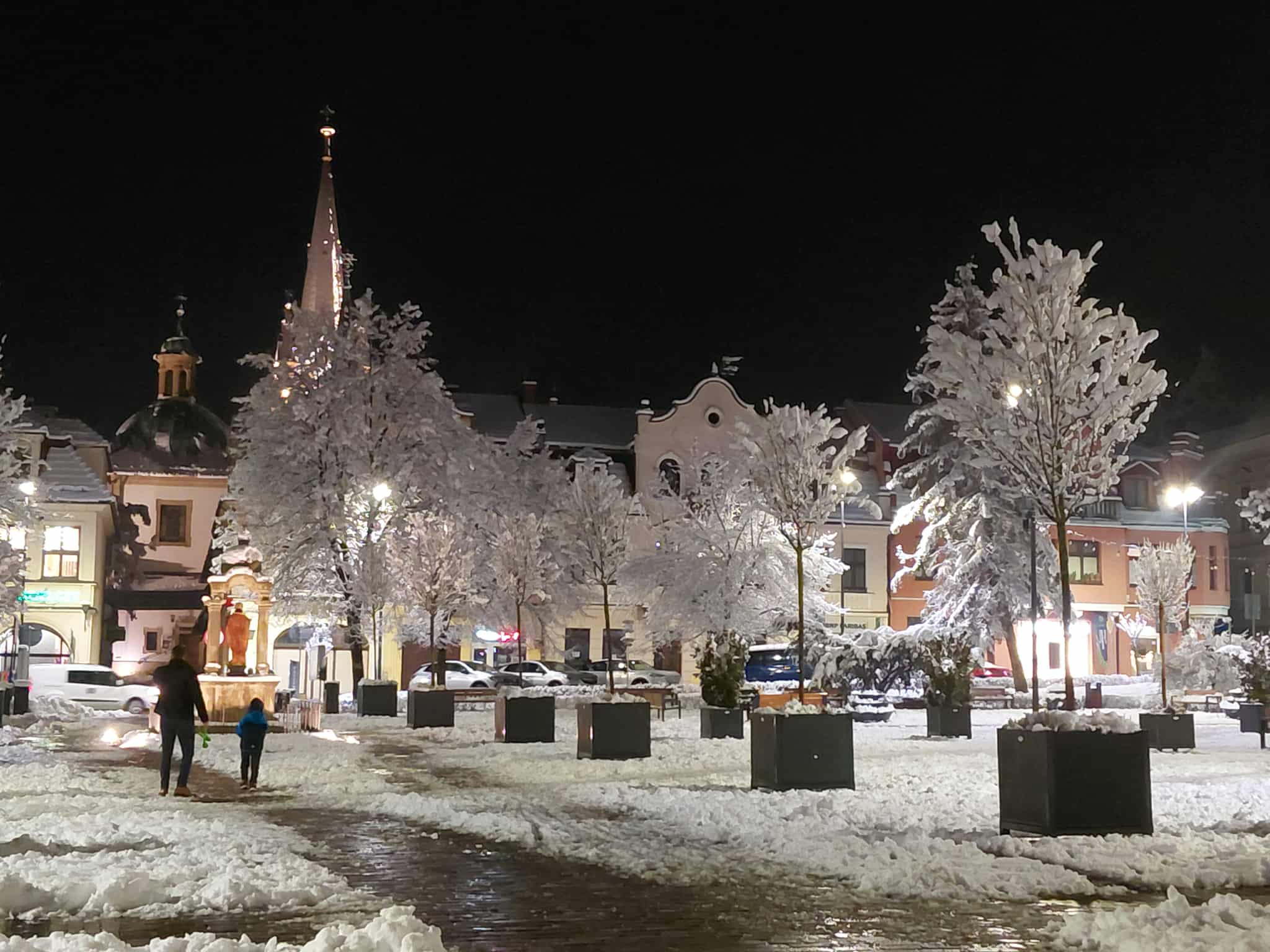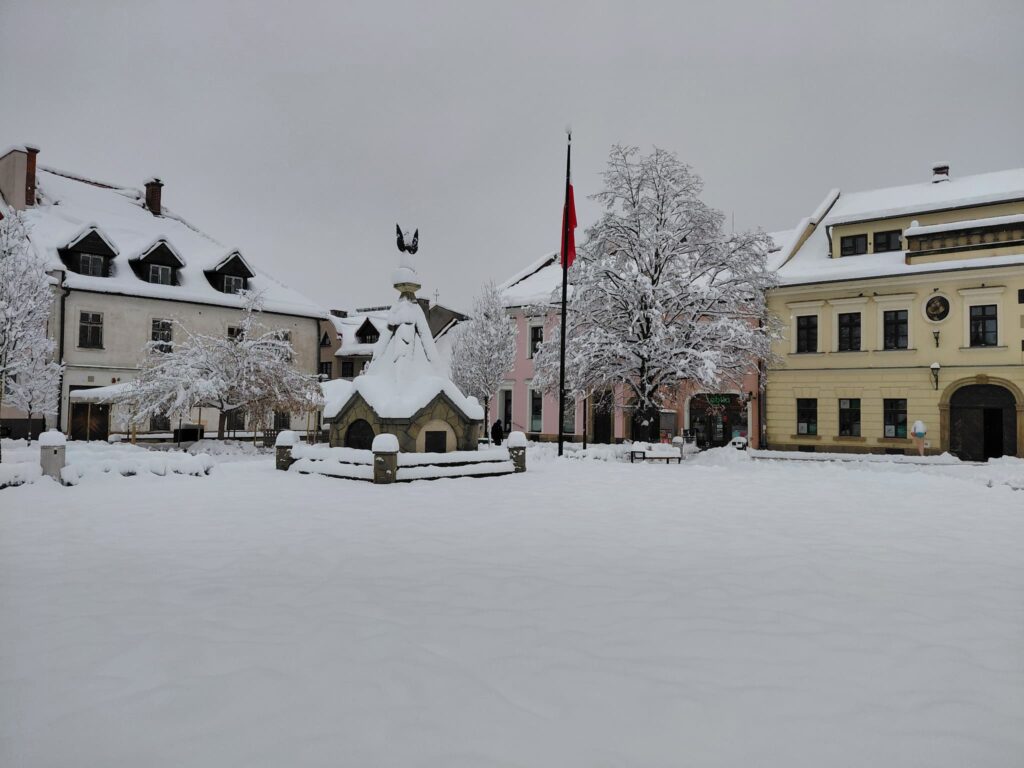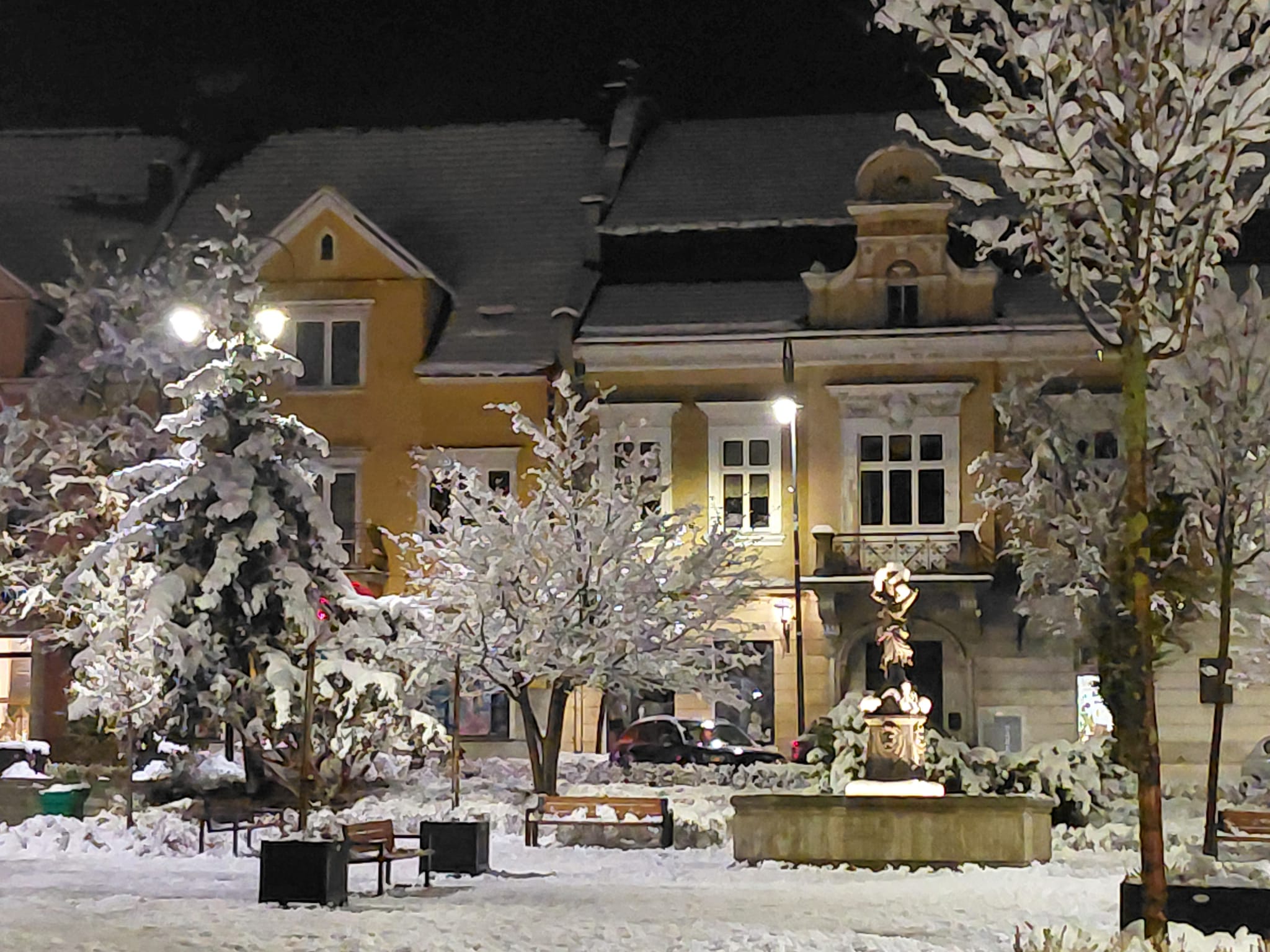 Takich ilości śniegu dość dawno nie w Myślenicach i okolicy nie widziano. Najwięcej frajdy sprawił najmłodszym, którzy mieli okazję odbyć pierwsze w tym sezonie przejażdżki na sankach, mniej kierowcom i strażakom, którzy mierzyli się ze skutkami tak obfitych opadów. Prognozy mówią, że nowy tydzień, jeśli chodzi o temperaturę powietrza, ma się zacząć na niewielkim, ale jednak plusie, więc czekają nas roztopy. Tym bardziej zachęcamy zerknąć na myślenicki Rynek, który przez mijający weekend prezentował się tak – cały na biało.