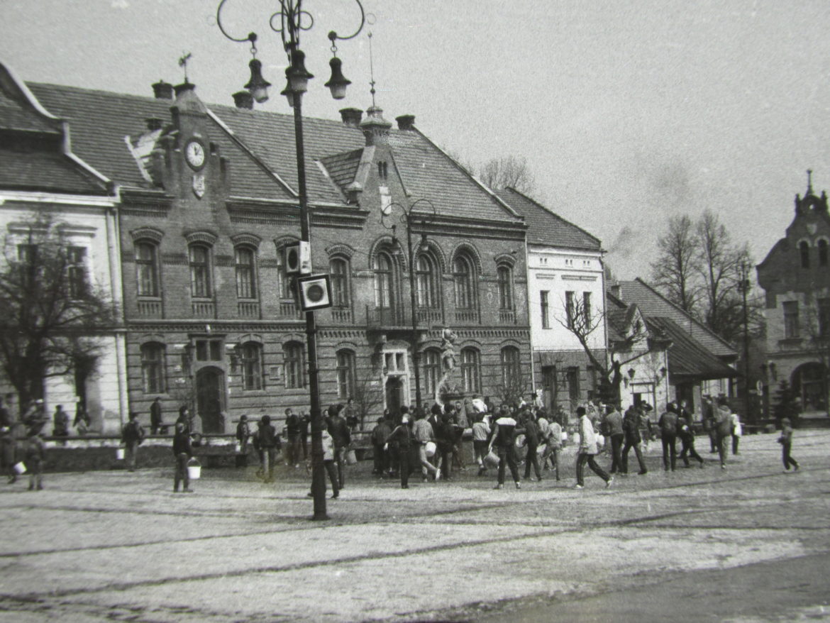Gdy już ruch przedpołudniowy przemijał, grupy młodzieży z wiadrami, konewkami i sikawkami, zazwyczaj zrobionymi z butelek po płynach do naczyń i szamponach, brały udział prawdziwych bitwach na wodę, między sobą. Krzyki, śmiechy i inne odgłosy dochodziły z Rynku, osiedli i pobliskich ulic. Wodę pobierano zazwyczaj z Tereski lub licznych studzienek, które w tym czasie znajdowały się na ulicach miasta.