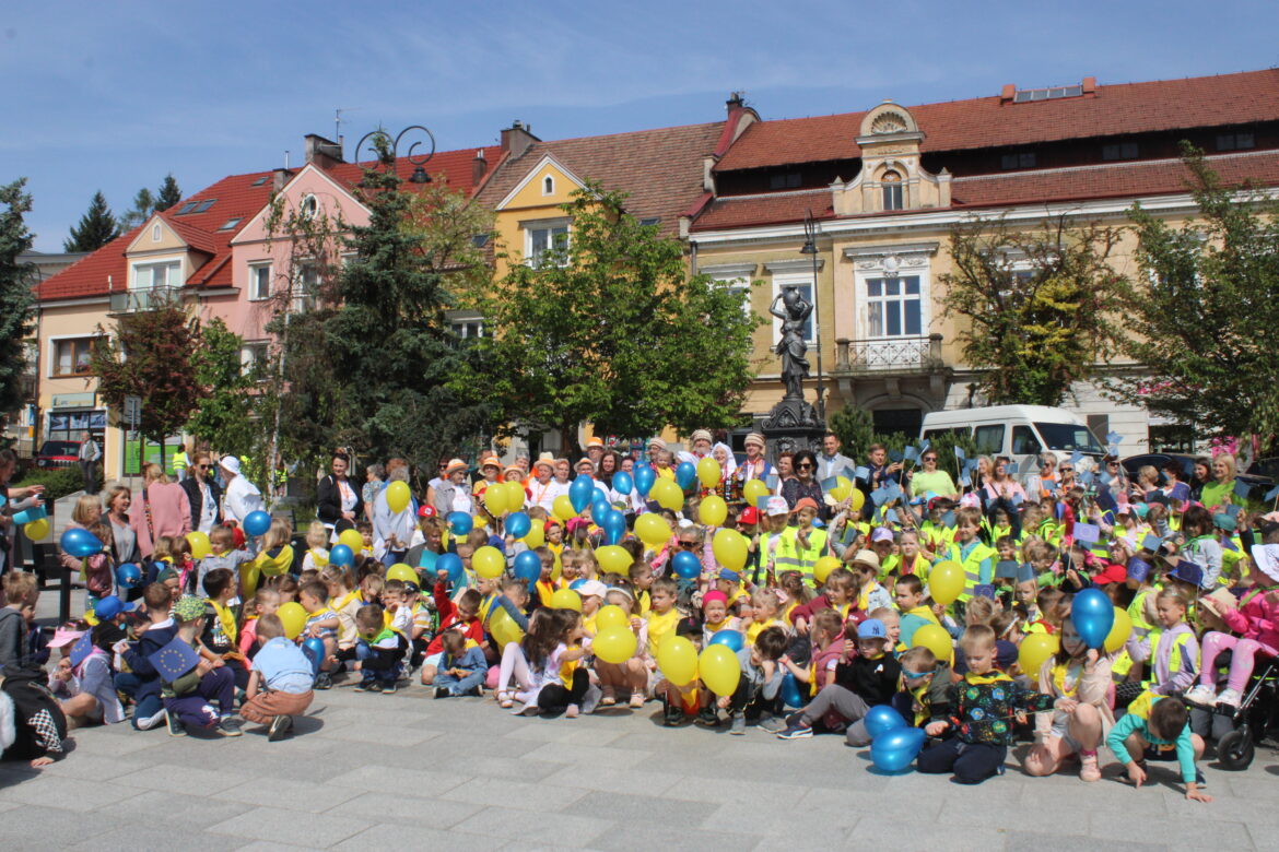 Happening odbył się pod hasłem „Świętuj z nami 20 lat Myślenic w Unii Europejskiej”, a wzięli w nim udział: chórzyści Reprezentacyjnego ZPiT „Ziemia Myślenicka”, przedszkolaki z miejskich przedszkoli, seniorzy zrzeszeni w Klubie Senior+ oraz zastępca burmistrza Myślenic Mateusz Suder, radny powiatu myślenickiego Robert Pitala i Małgorzata Aleksandrowicz, dyrektor Centrum Usług Społecznych.