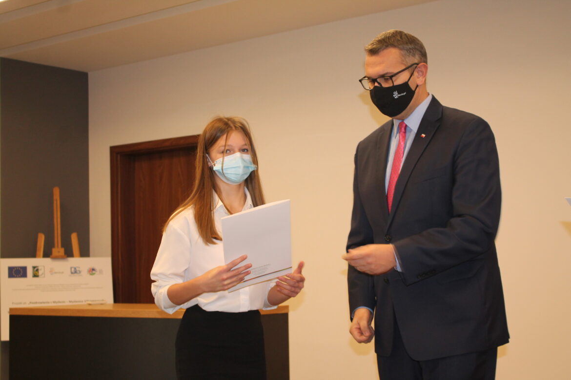 Uroczystość wręczenia nagród zorganizowano w Muzeum Niepodległości w Myślenicach. Burmistrz oraz naczelnik Wydziału Edukacji i Zdrowia Urzędu Miasta i Gminy Myślenice Małgorzata Ciemińska pogratulowali uczniom sukcesów. Włodarz podkreślił, że osiągnięcia są tym cenniejsze, że udało się uzyskać je w trudnym, pandemicznym czasie. Laureaci otrzymali pamiątkowe dyplomy oraz nagrody finansowe.