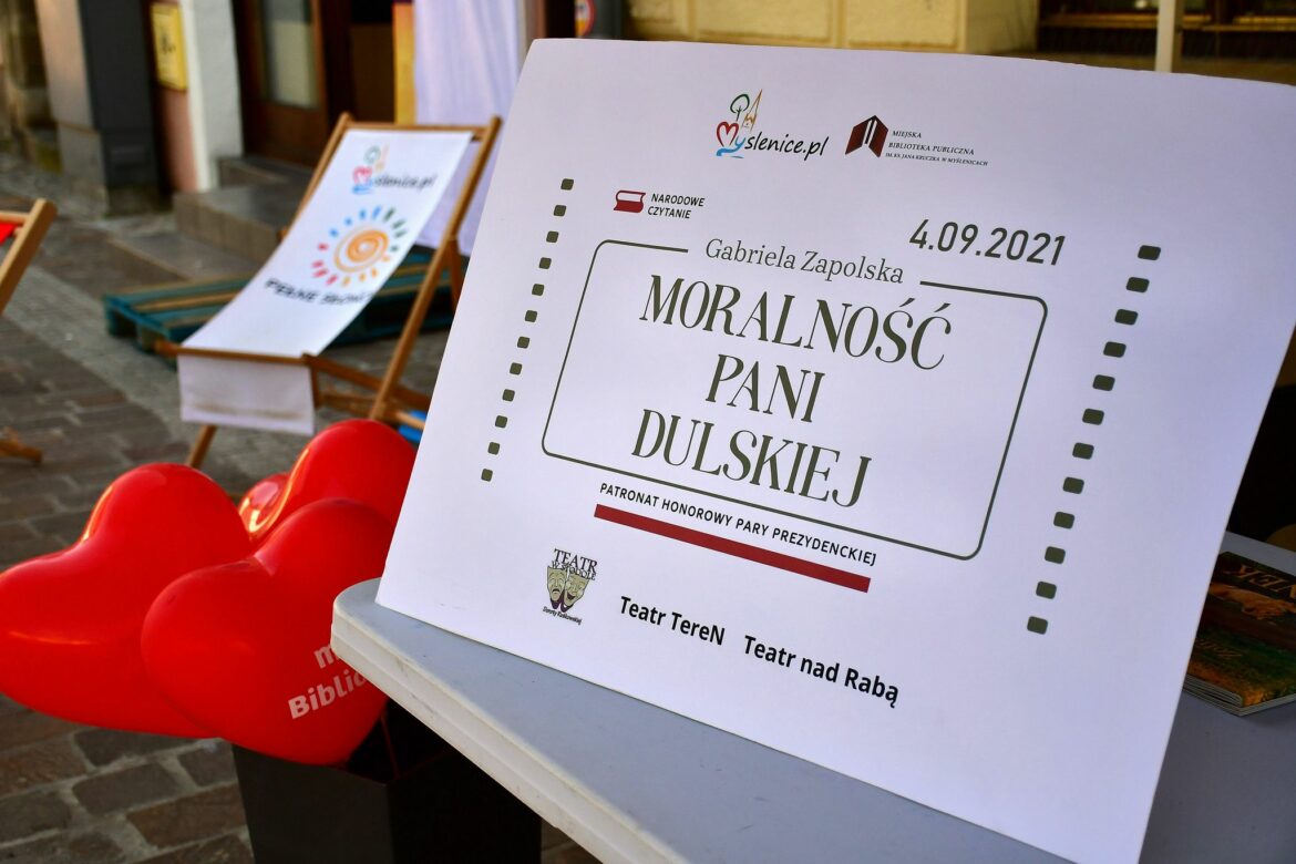 Narodowe Czytanie odbyło się również w Myślenicach. W kamienicy Obońskich w świat Dulskich wprowadzili nas aktorzy teatru TereN oraz Teatru nad Rabą w reżyserii Agnieszki „Toli” Słomki, natomiast na stopniach Szkoły Podstawowej nr 1 wystąpili aktorzy Teatru w Stodole w reżyserii Doroty Ruśkowskiej. Sygnał do rozpoczęcia czytania dali poseł Władysław Kurowski oraz burmistrz Jarosław Szlachetka, który przeczytał list od Prezydenta Andrzeja Dudy, skierowany do uczestników Narodowego Czytania.