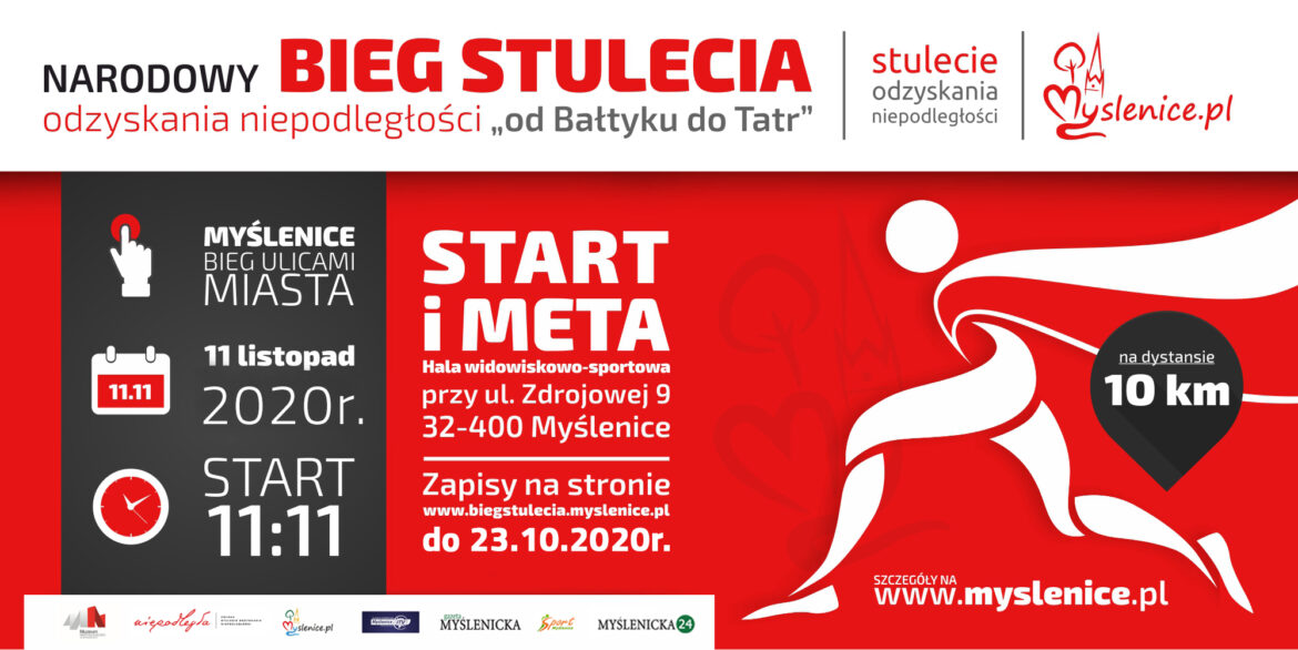 W Święto Narodowe 11 listopada 2020 o 11:11 pod halą widowiskowo-sportową na Zarabiu ruszy trzecia edycja Narodowego Biegu Stulecia Odzyskania przez Polskę niepodległości „Od Bałtyku do Tatr” na dystansie 10 kilometrów – zachęcamy do zapisów na stronie www.biegstulecia.myslenice.pl