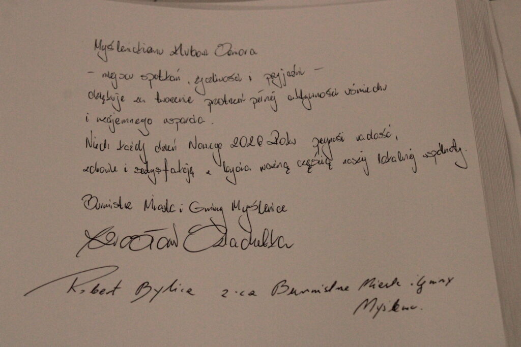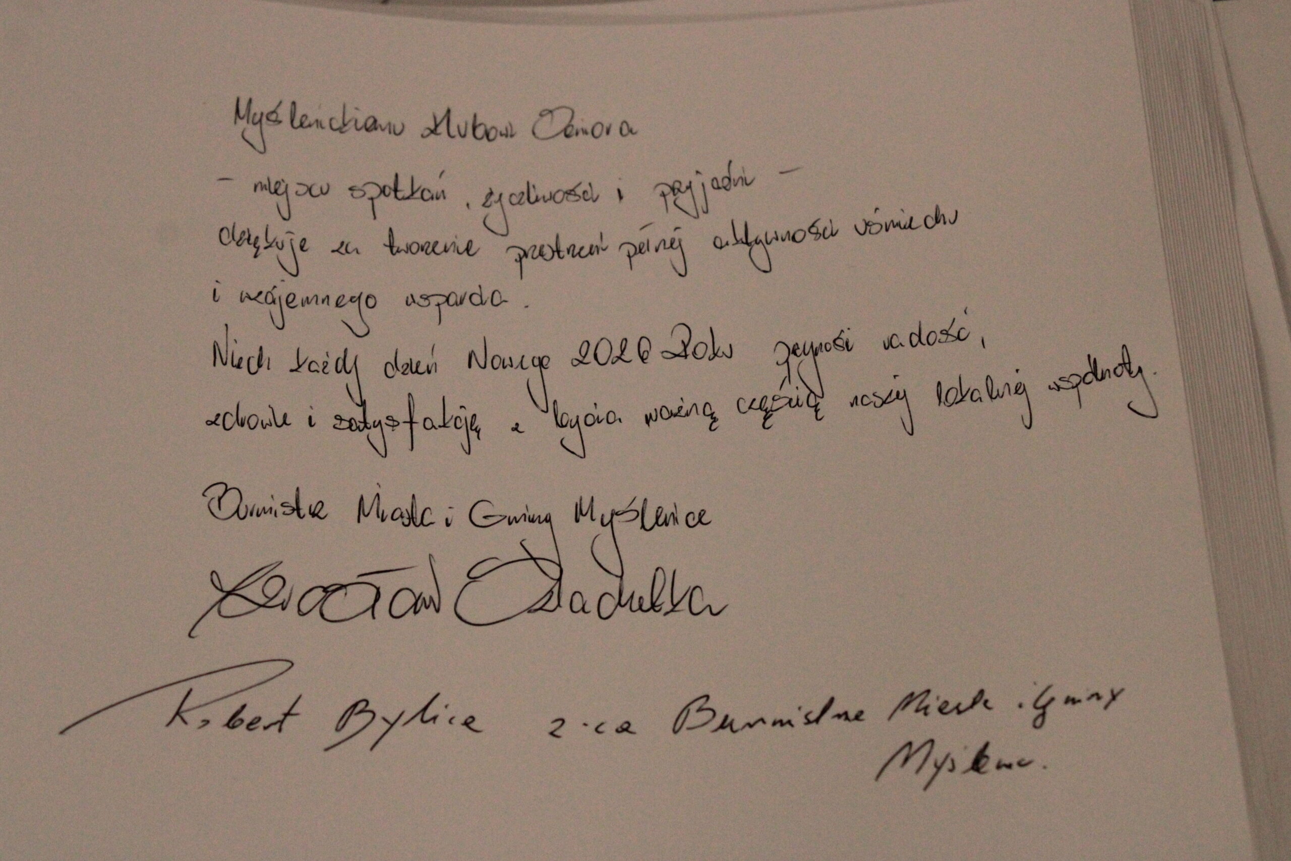 Fotografie z tego wydarzenia oraz z wszystkich pozostałych znalazły się w kronice klubu, w której podczas środowego spotkania burmistrz Jarosław Szlachetka wraz z zastępcą burmistrza Robertem Bylicą zostawili wpis z podziękowaniami i życzeniami: