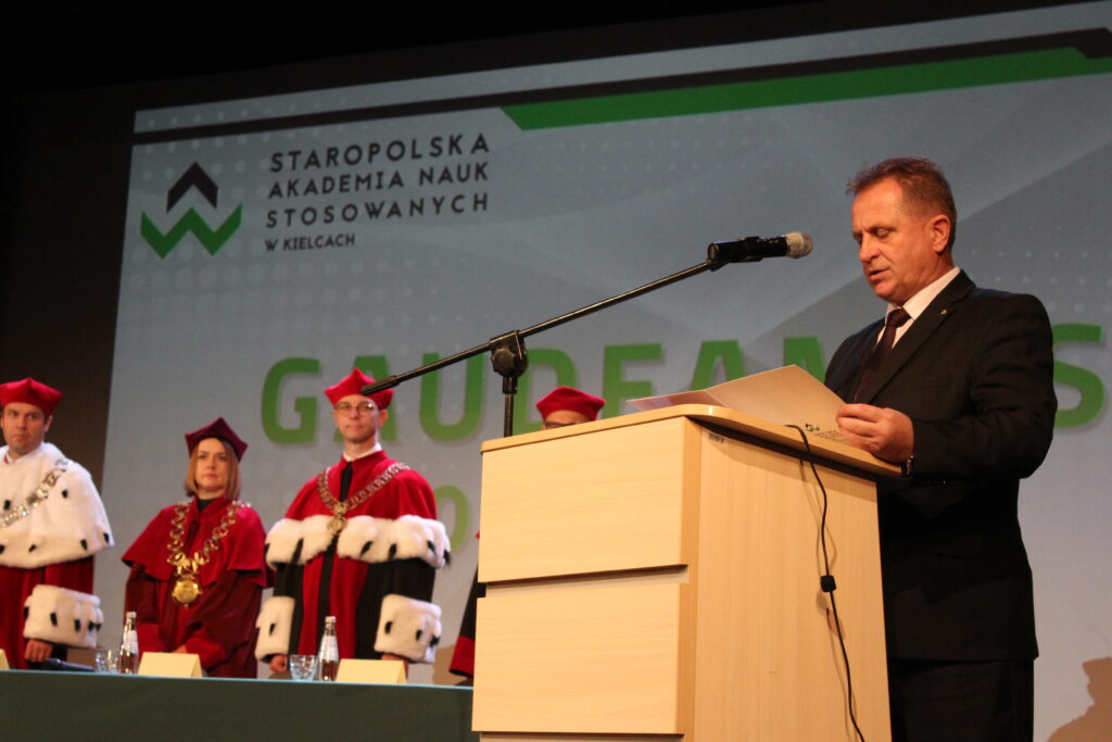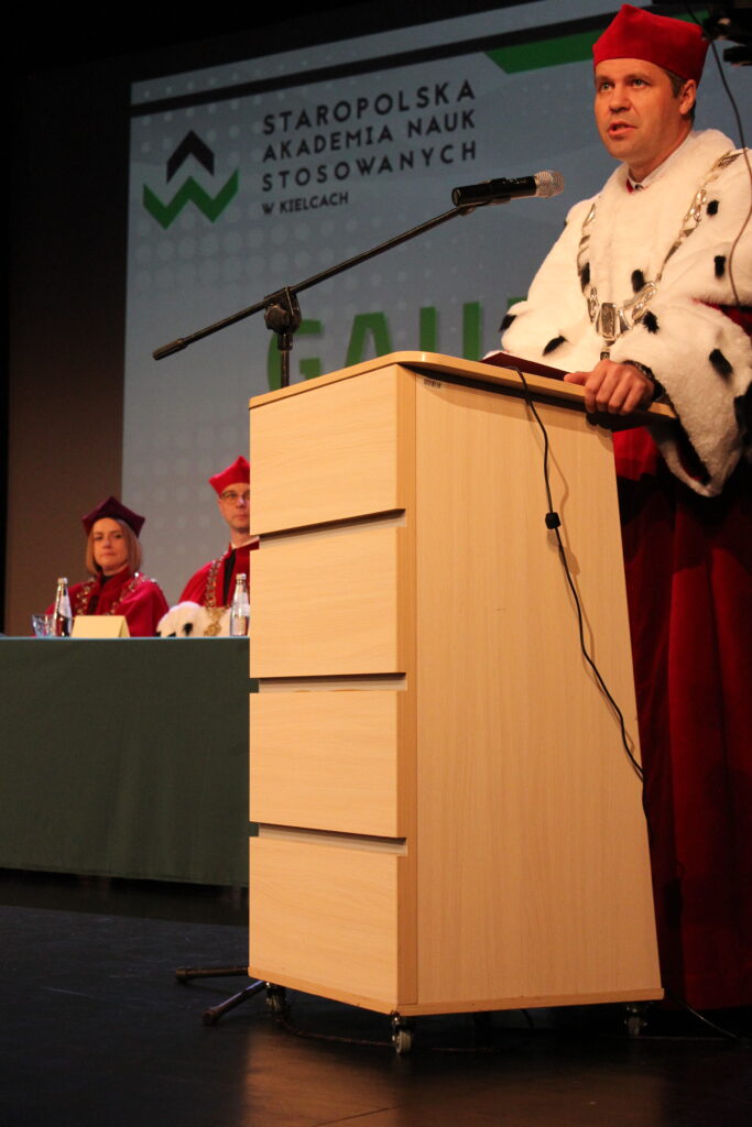 Rektor dr hab. Grzegorz Wilk-Jakubowski, prof. StANS, powitał władze uczelni, studentów i zaproszonych gości, podkreślając znaczenie spotkania tradycji i energii młodego pokolenia.