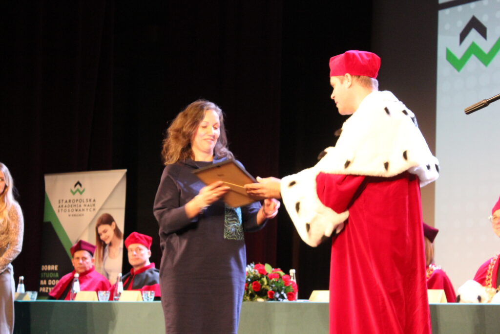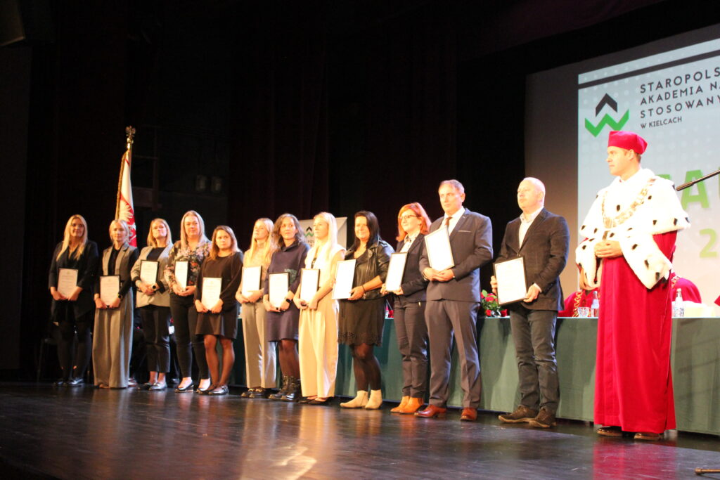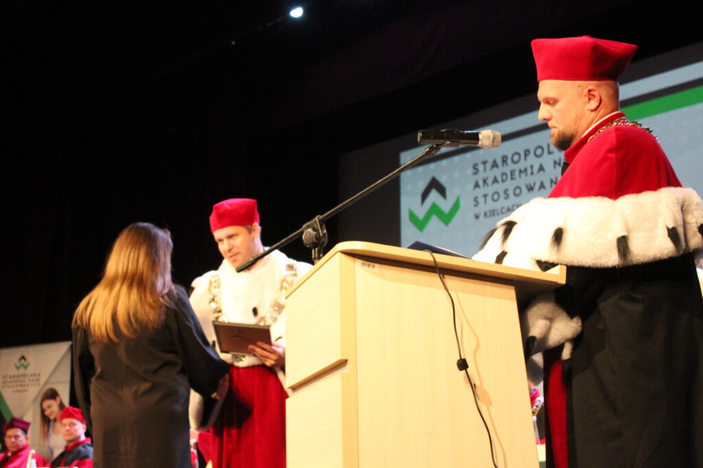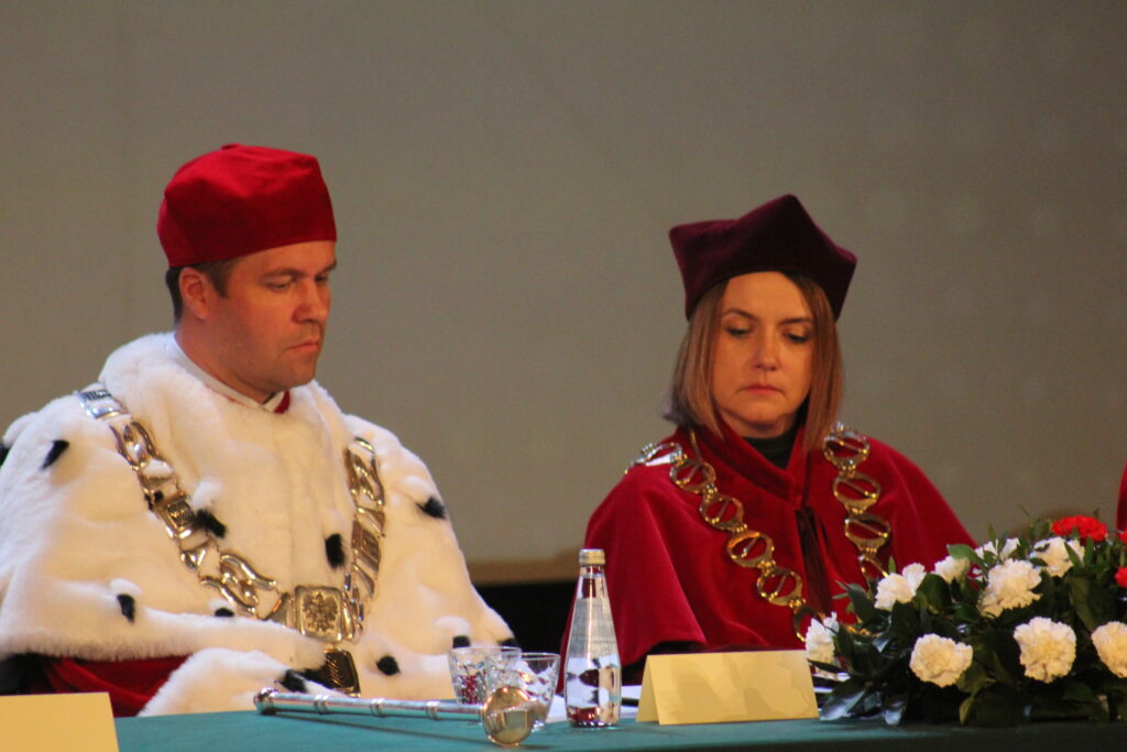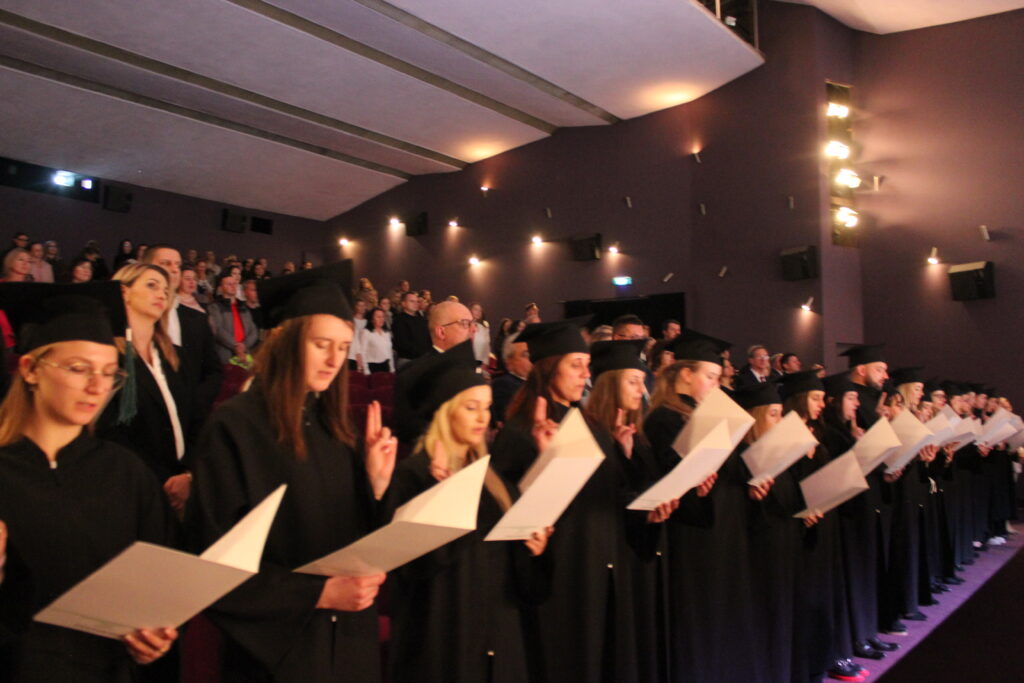 Studenci pierwszego roku złożyli uroczystą przysięgę, a najlepszym absolwentom wręczono listy gratulacyjne za ukończenie studiów z wyróżnieniem.