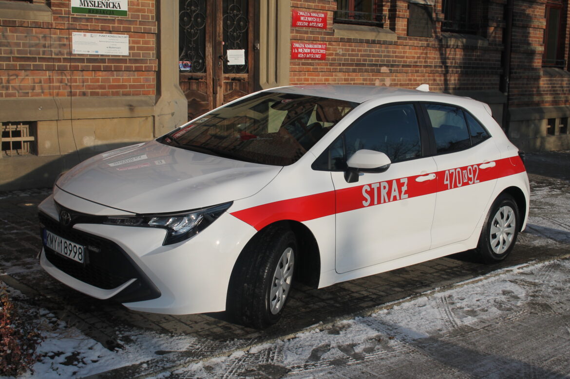 Komenda Powiatowa Państwowej Straży Pożarnej w Myślenicach dzięki wsparciu finansowemu Gminy Myślenice zakupiła nowy lekki samochód operacyjny do realizacji działań i czynności operacyjnych. Komendant PSP st. bryg. mgr inż. Sławomir Kaganek oficjalnie zaprezentował nowy samochód marki Toyota Corolla i złożył podziękowania na ręce burmistrza Miasta i Gminy Myślenice Jarosława Szlachetki oraz Przewodniczącego Rady Miejskiej Jana Podmokłego za okazane wsparcie.