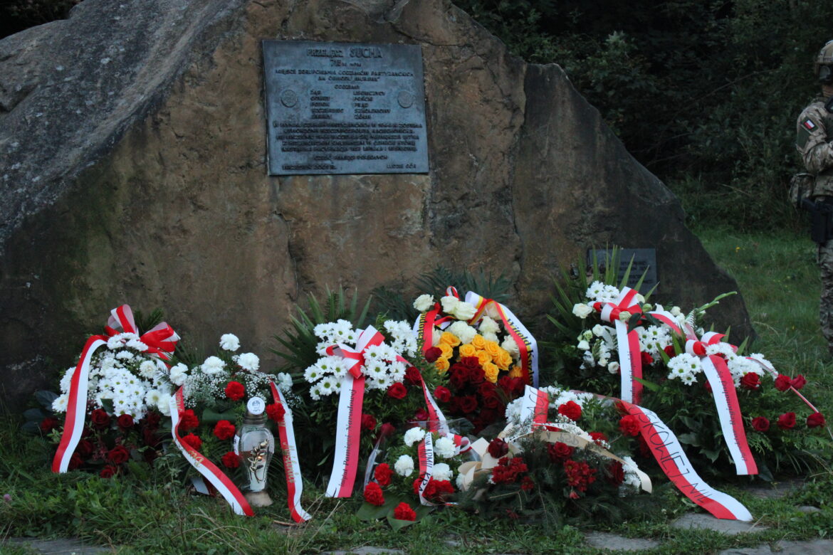I przypominają, że właśnie na Suchej Polanie 79 lat temu, a dokładnie 3 września 1944 roku podczas uroczystej mszy świętej, został poświęcony sztandar Obwodu Armii Krajowej „Murawa” .
