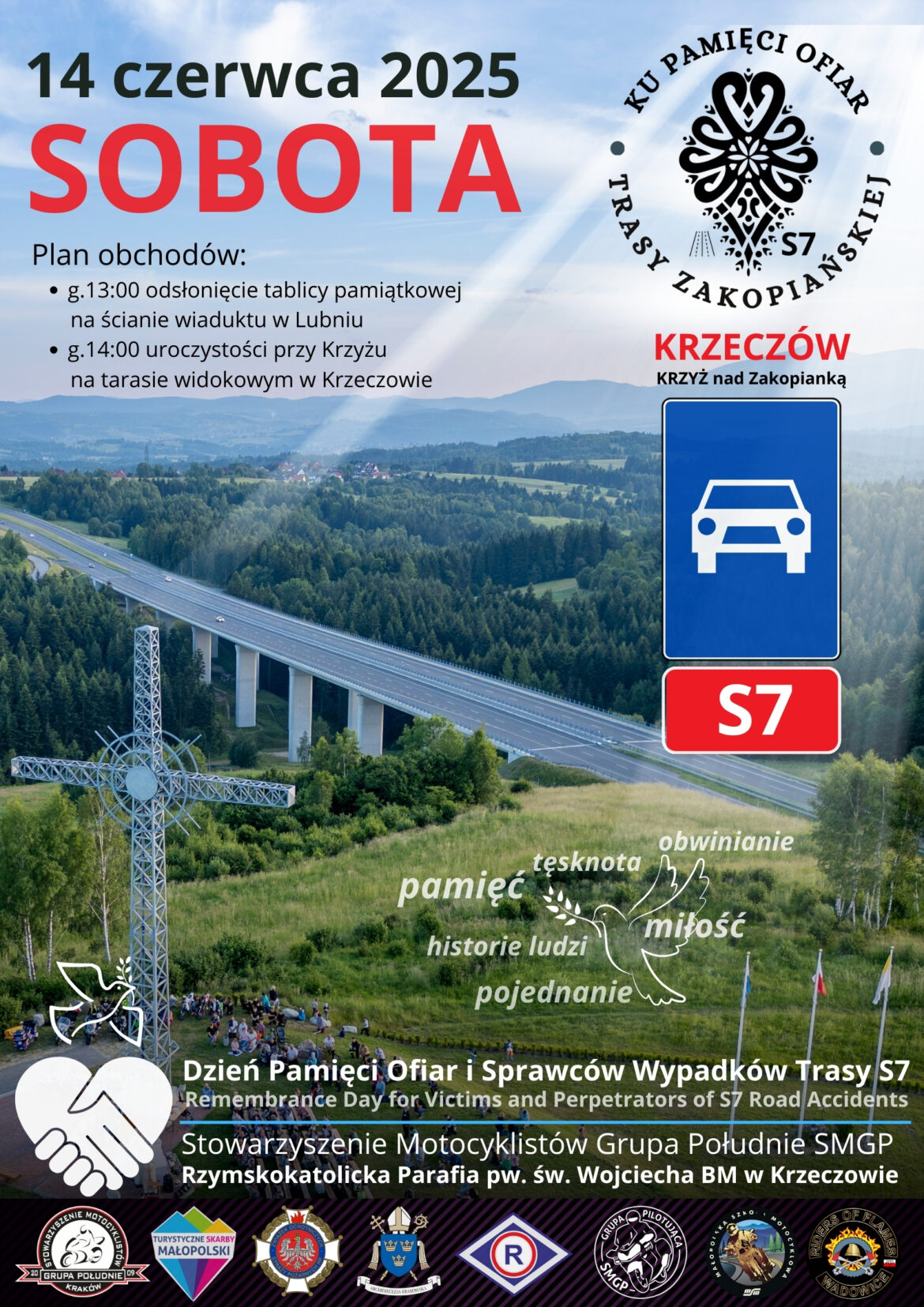 W spotkaniu przy Krzyżu nad Zakopianką wezmą udział przedstawiciele policji, straży pożarnej i zespołów ratownictwa medycznego oraz środowiska motocyklistów. Rozpocznie się ono o godz. 14 a zakończy je odprawiona tam na miejscu msza św., ale godzinę wcześniej (o godz. 13) w Lubniu przy wiadukcie w ciągu zakopianki odbędzie się poświęcenie tablicy upamiętniającej tragiczny wypadek sprzed 13 lat, w wyniku którego zginęło troje węgierskich motocyklistów.