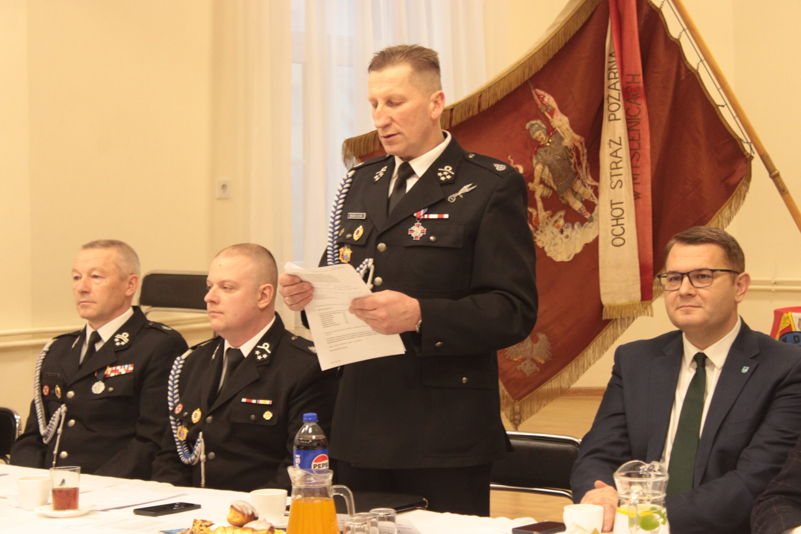 Gratulacje nowym honorowym członkom jednostki, nowo wybranemu Zarządowi, jak i podziękowania dla poprzedniego, oraz podziękowania wszystkim druhom za ich bezinteresowną działalność na rzecz lokalnej społeczności złożył obecny na zebraniu burmistrz miasta i gminy Myślenice Jarosław Szlachetka.