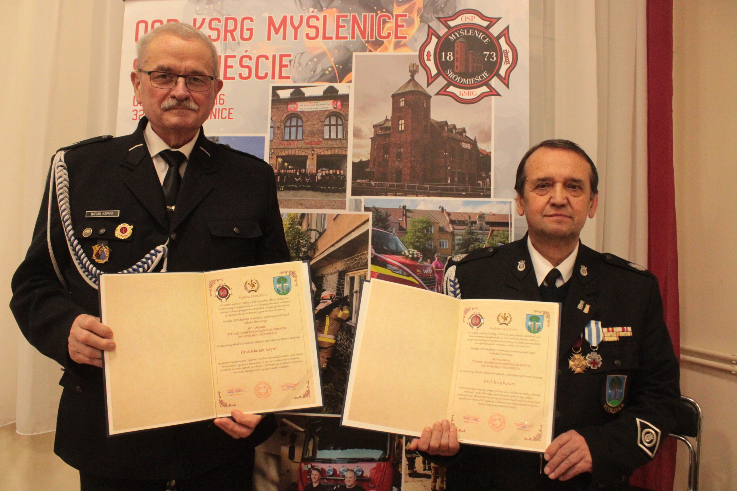 Druhowie przyznali też na tym zebraniu tytuły honorowych członków OSP Myślenice Śródmieście dwóm druhom: Jerzemu Rozumowi i Marianowi Kaperze, doceniając w ten sposób ich „nieoceniony wkład w działalność jednostki”.